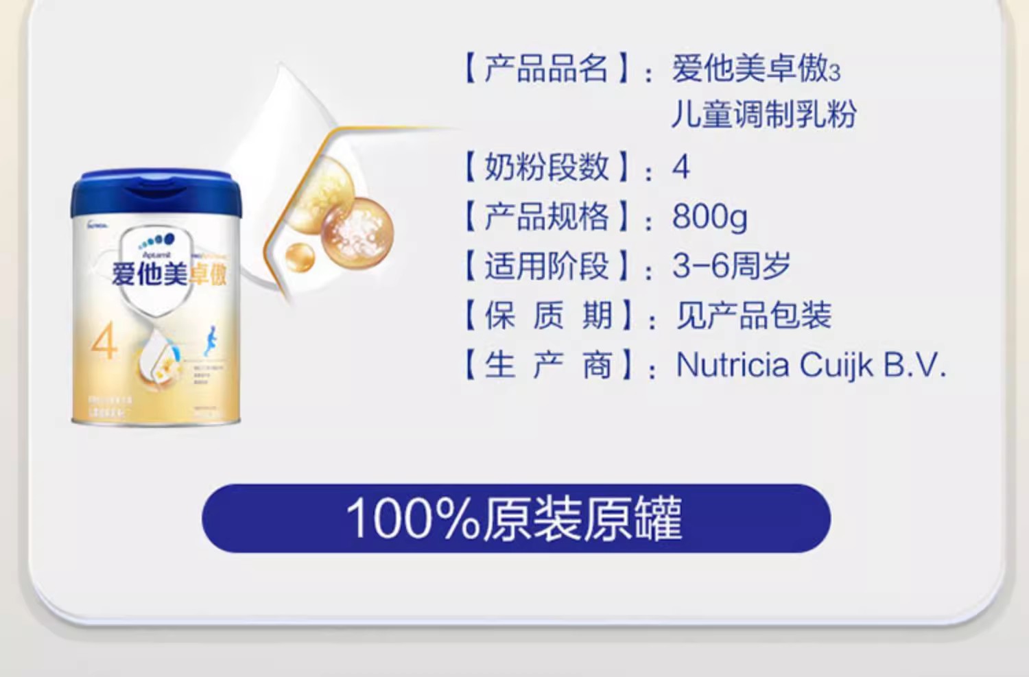 【整箱6罐】爱他美卓傲4段儿童配方调制乳粉儿童800g/ATM-614097