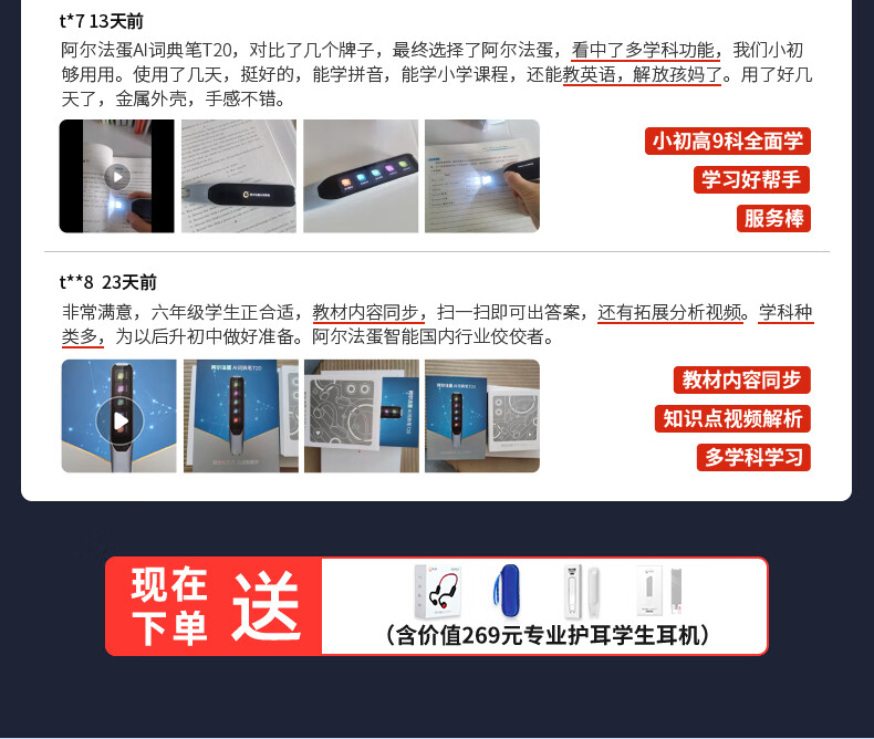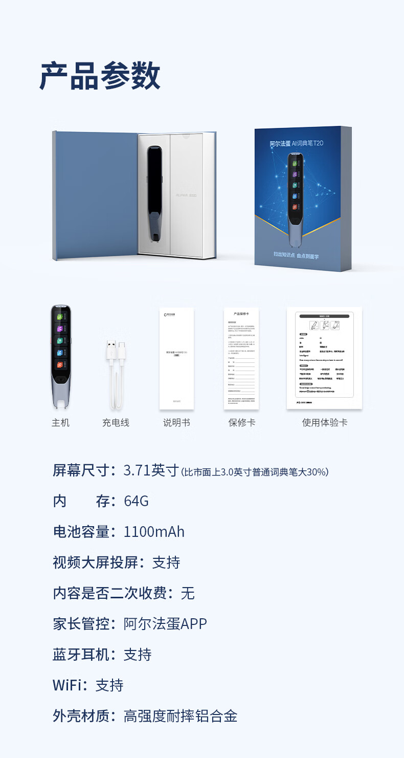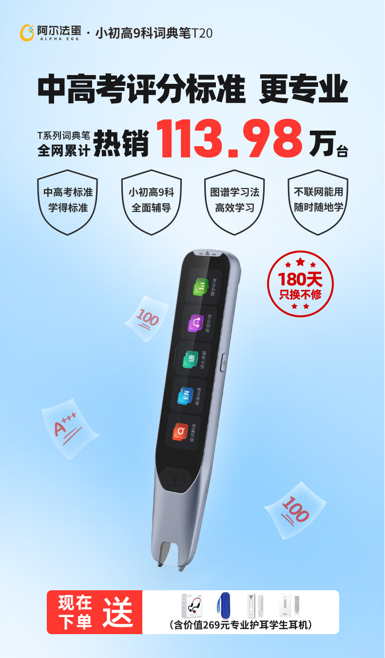阿尔法蛋AI词典笔T20 送269元阿尔法蛋蓝牙耳机