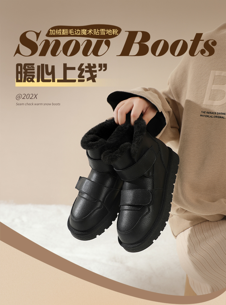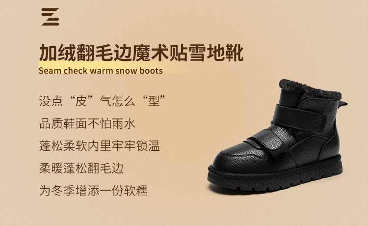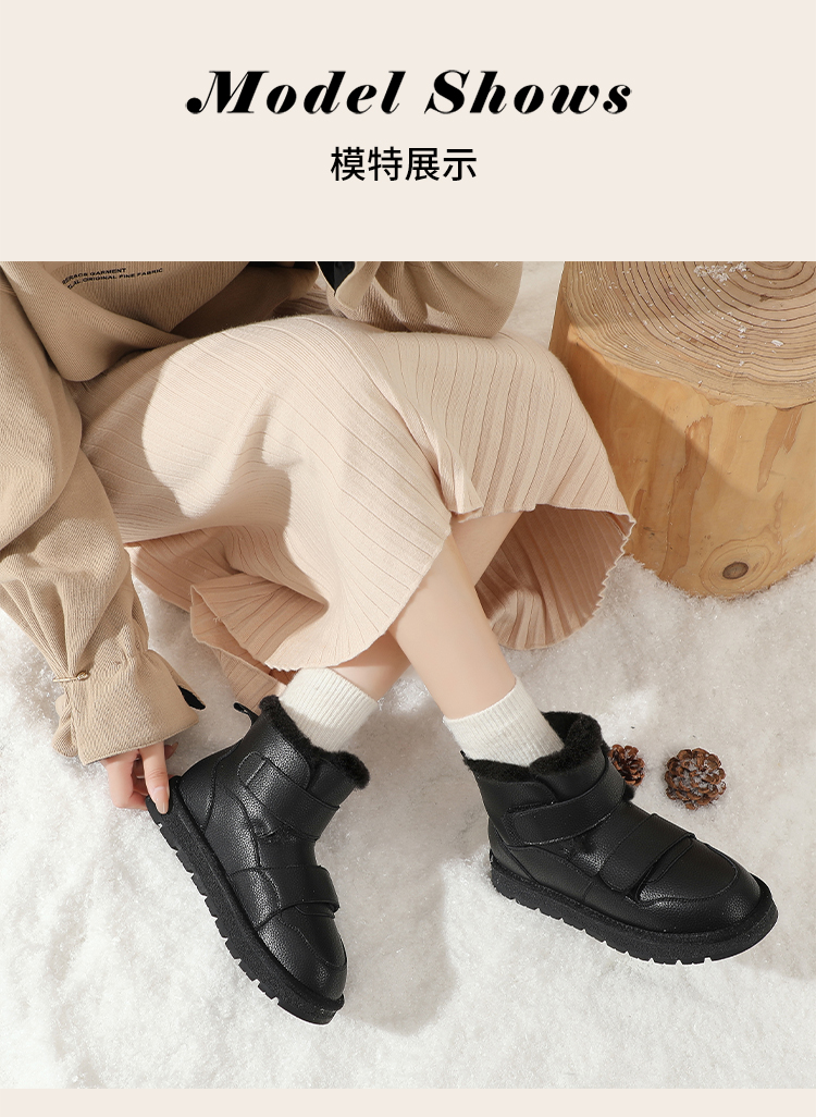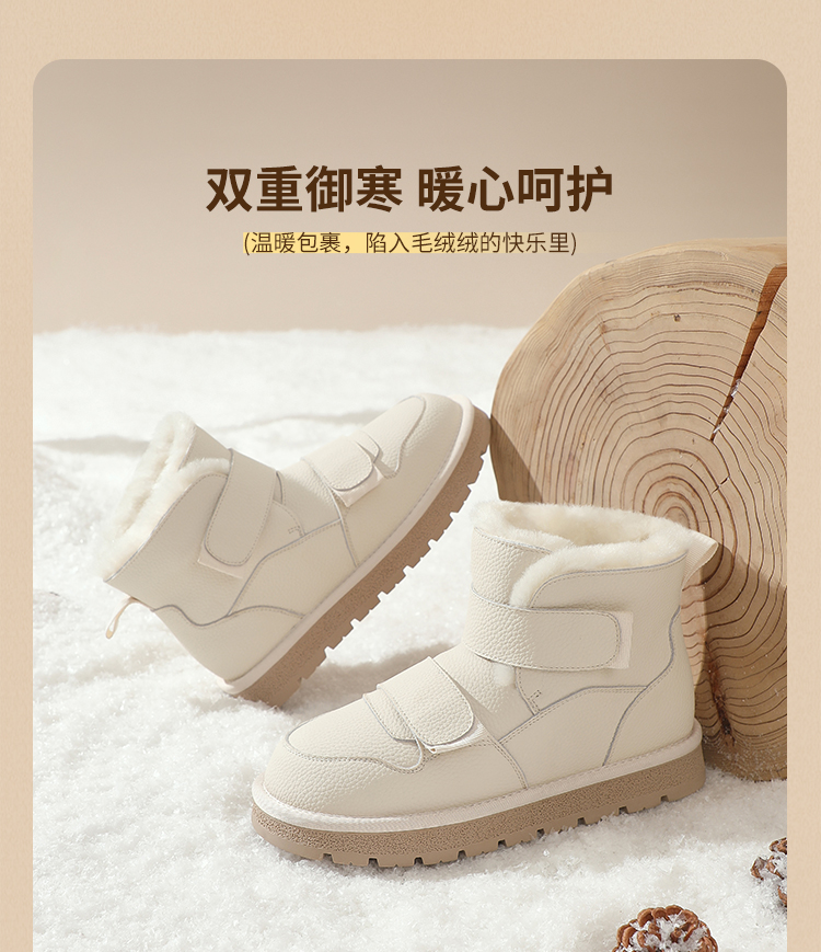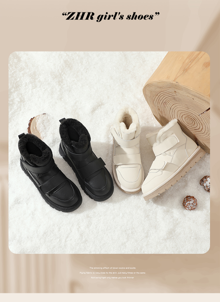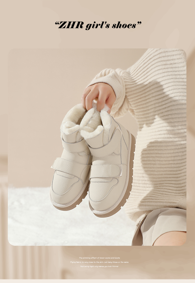 ZHR雪地靴女2023冬季新款厚底加绒加厚翻毛边休闲魔术贴雪地靴