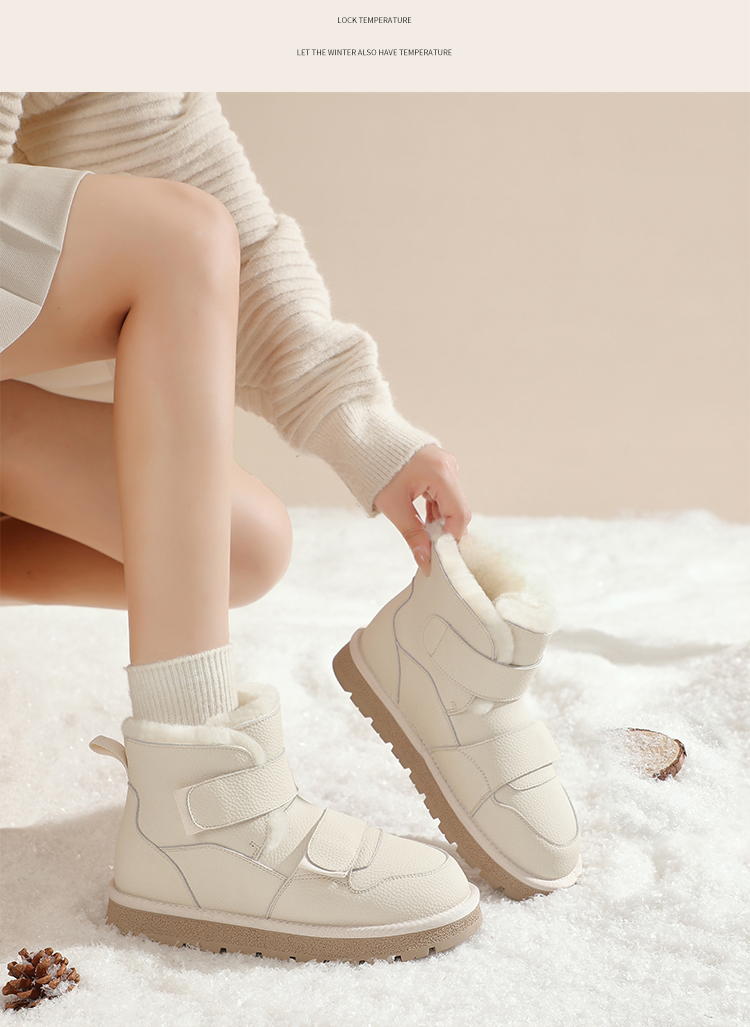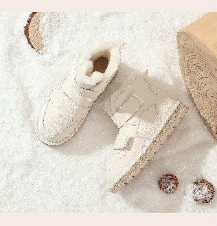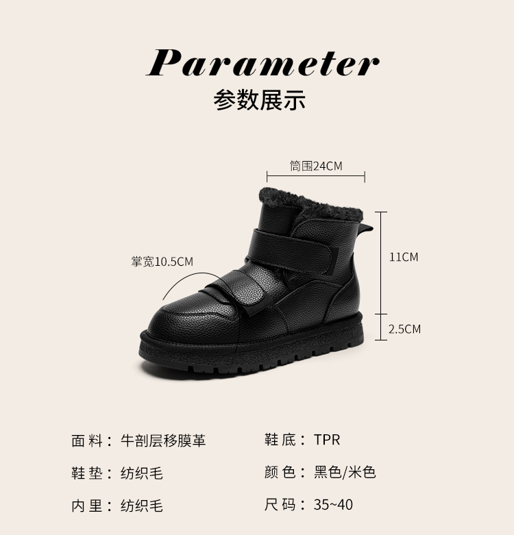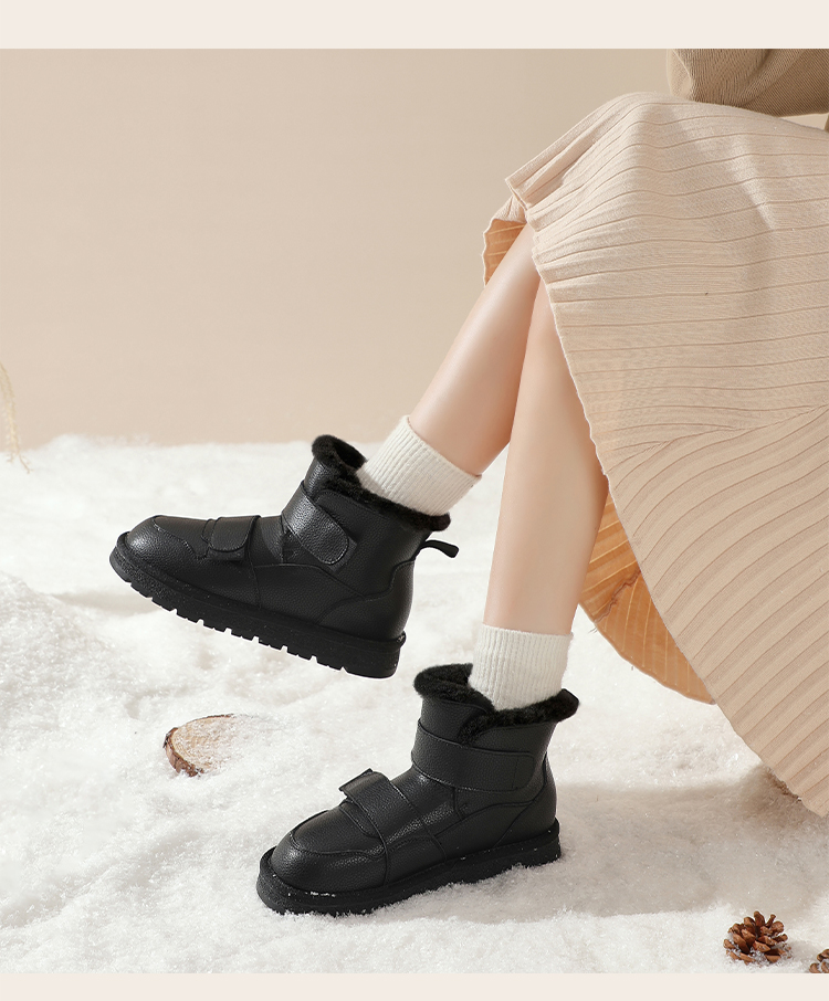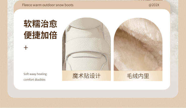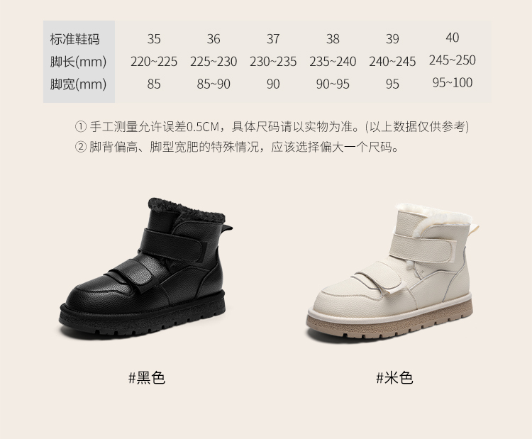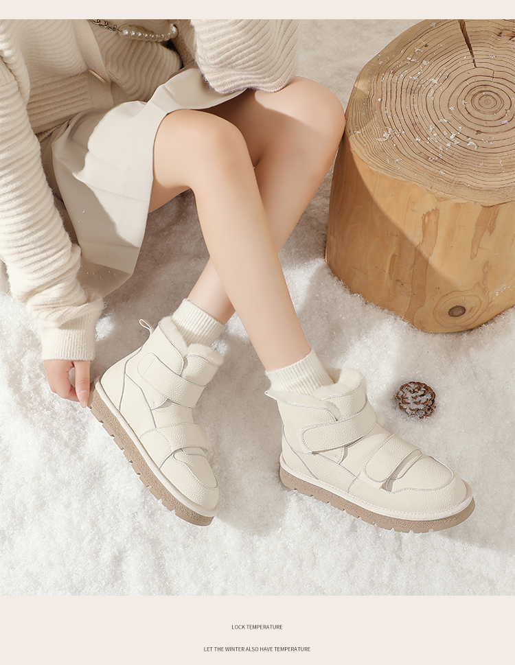 ZHR雪地靴女2023冬季新款厚底加绒加厚翻毛边休闲魔术贴雪地靴