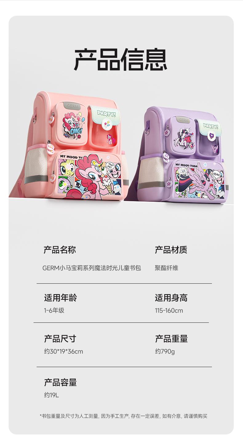 GERM小马宝莉儿童书包女生小学生背包女孩护脊减负一三到六年级