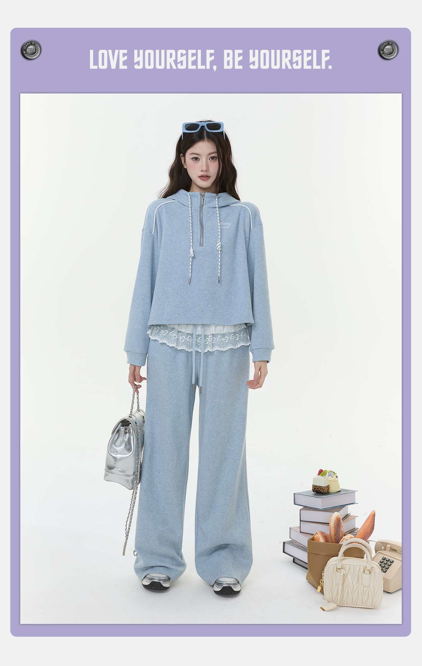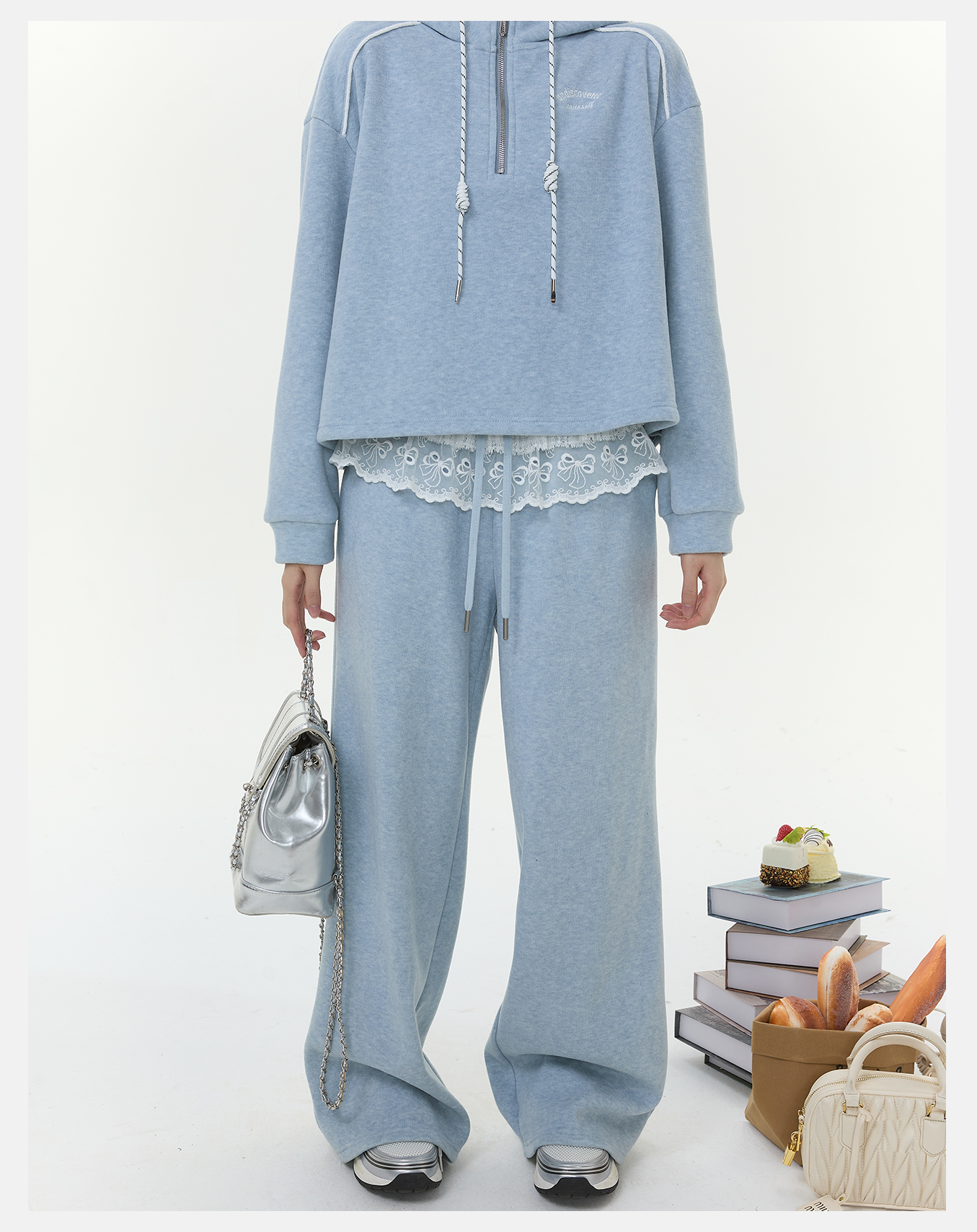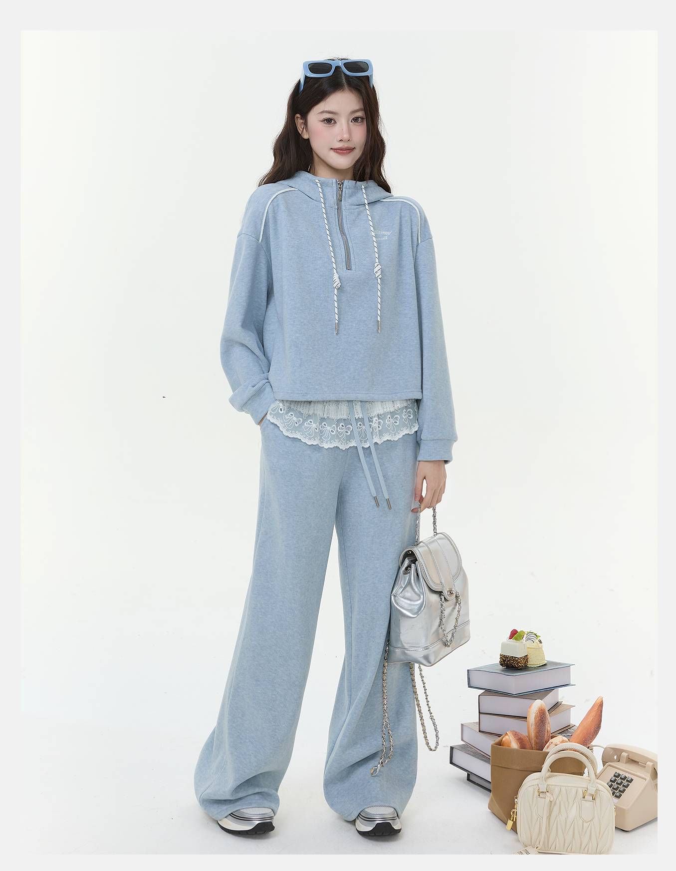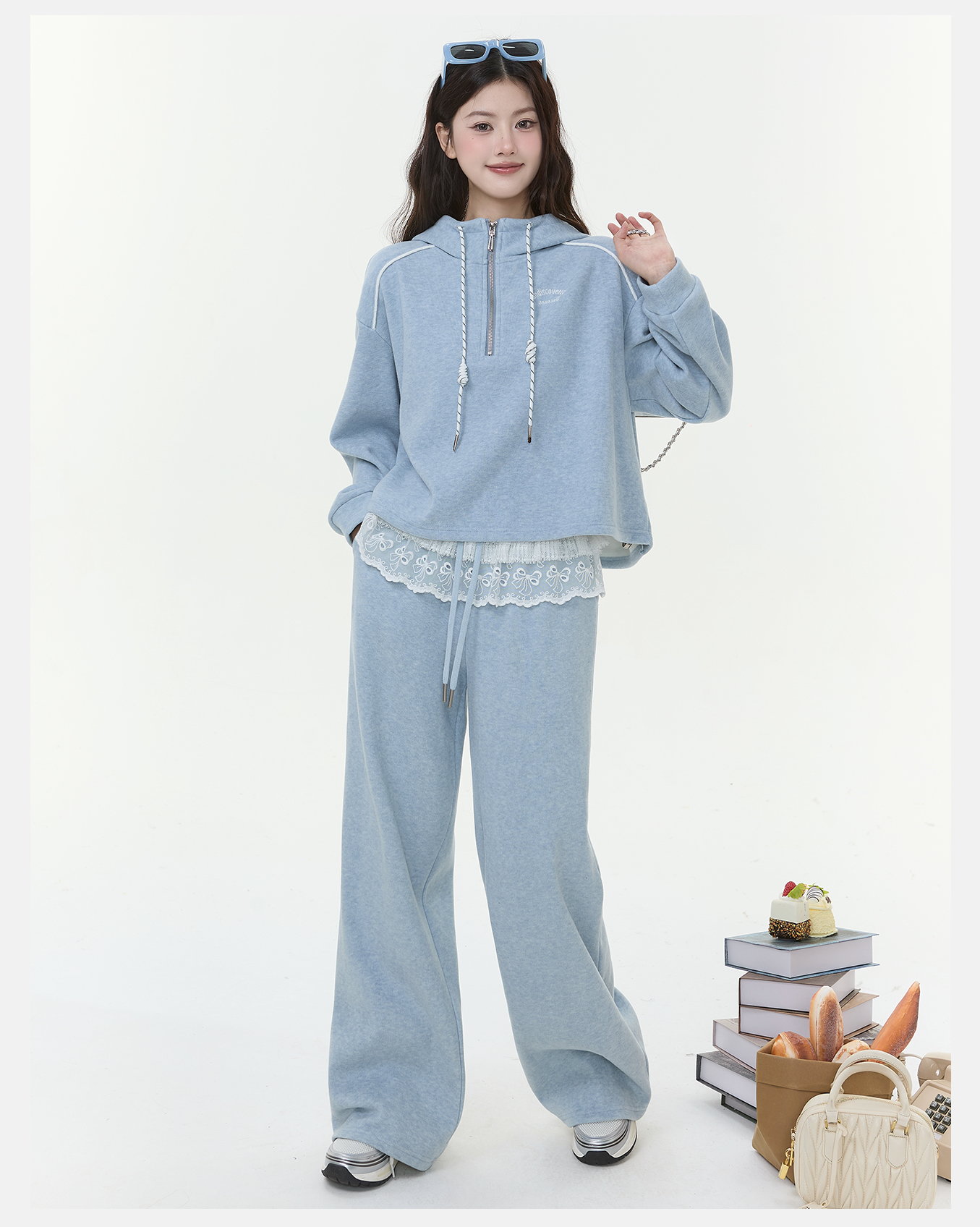 P&X设计师女装2025冬季慵懒风加绒时尚套装长裤 825414195 蓝色