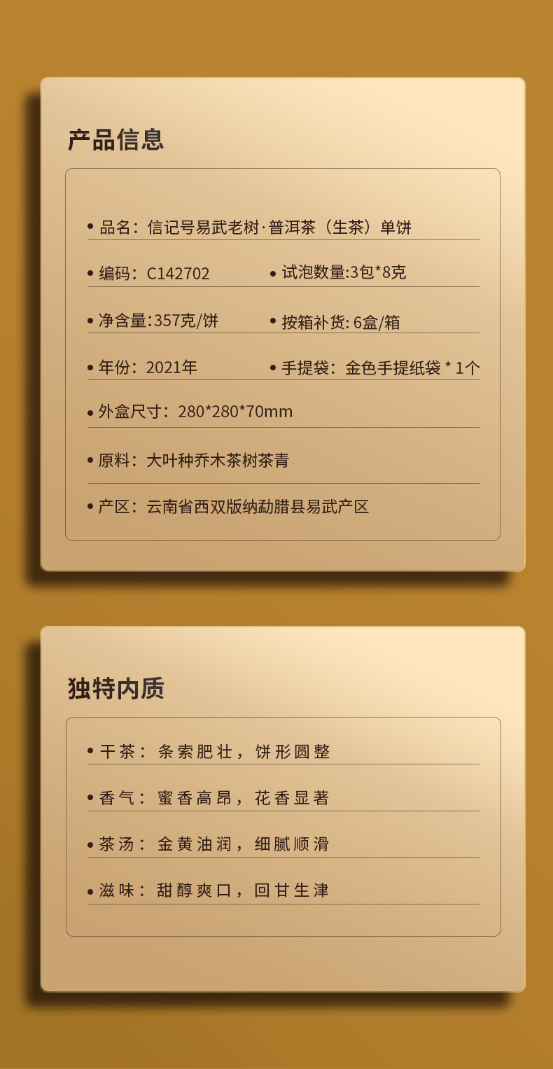 八马信记号 | 信记号易武老树普洱茶(生茶)单饼 357克