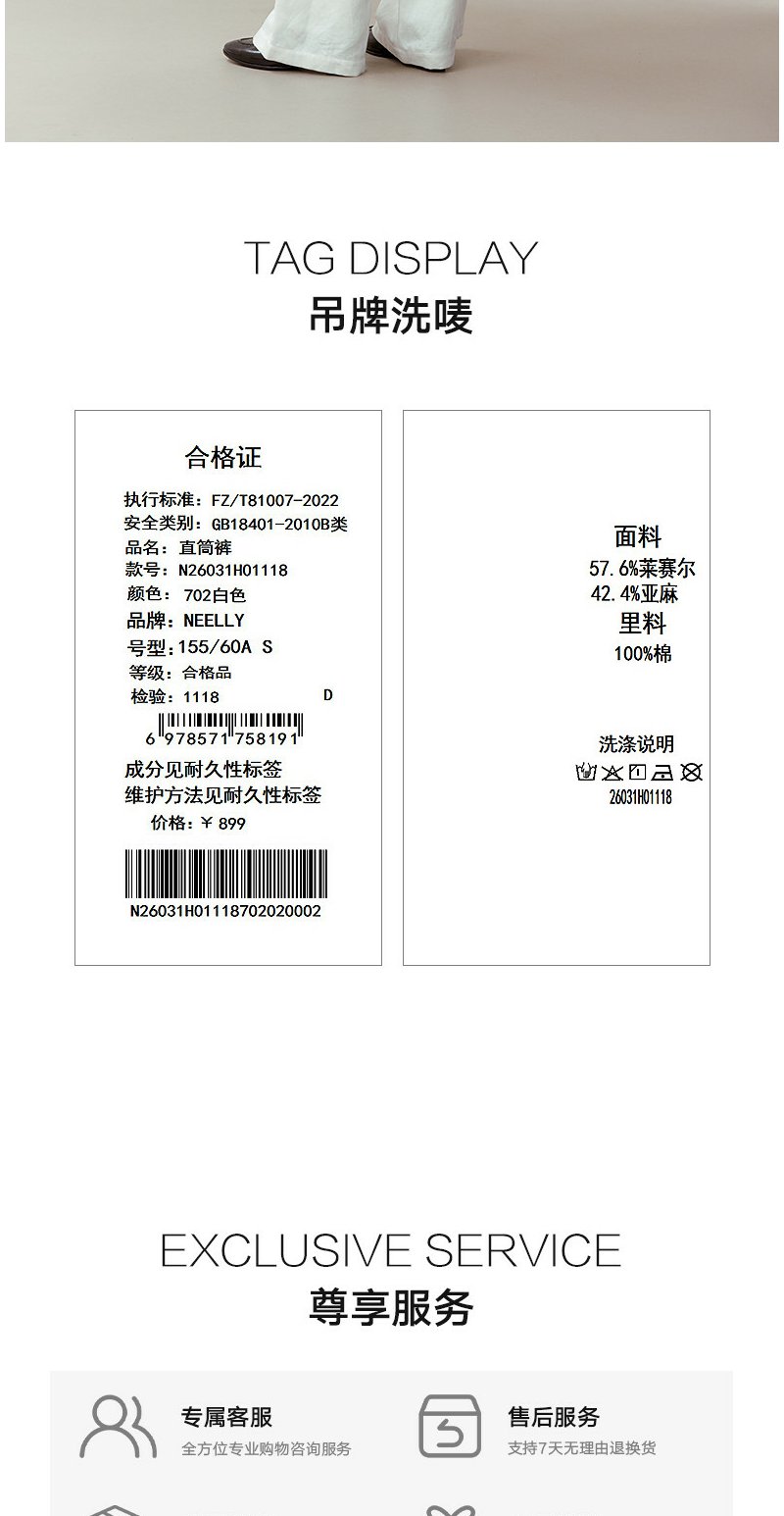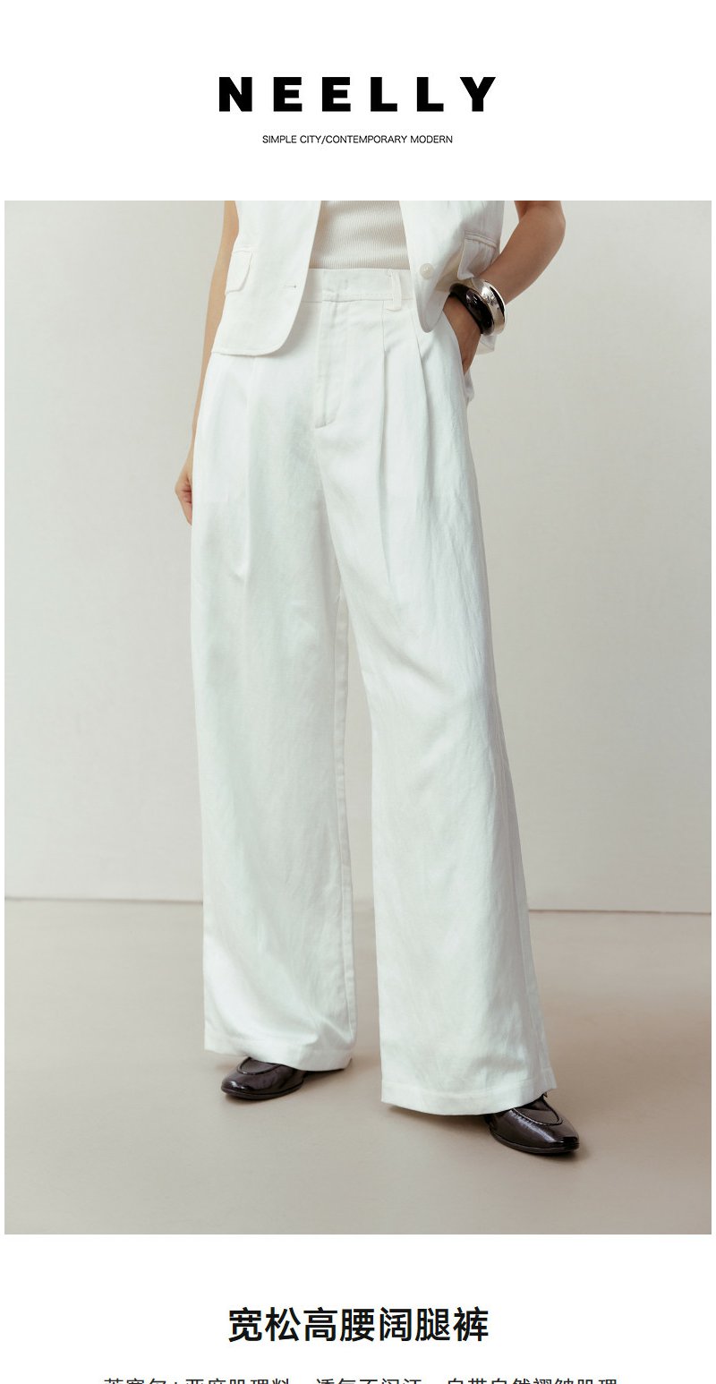 NEELLY纳俪商场同款春季新款宽松肌理感阔腿裤女随性松弛百搭长裤N26031H01118