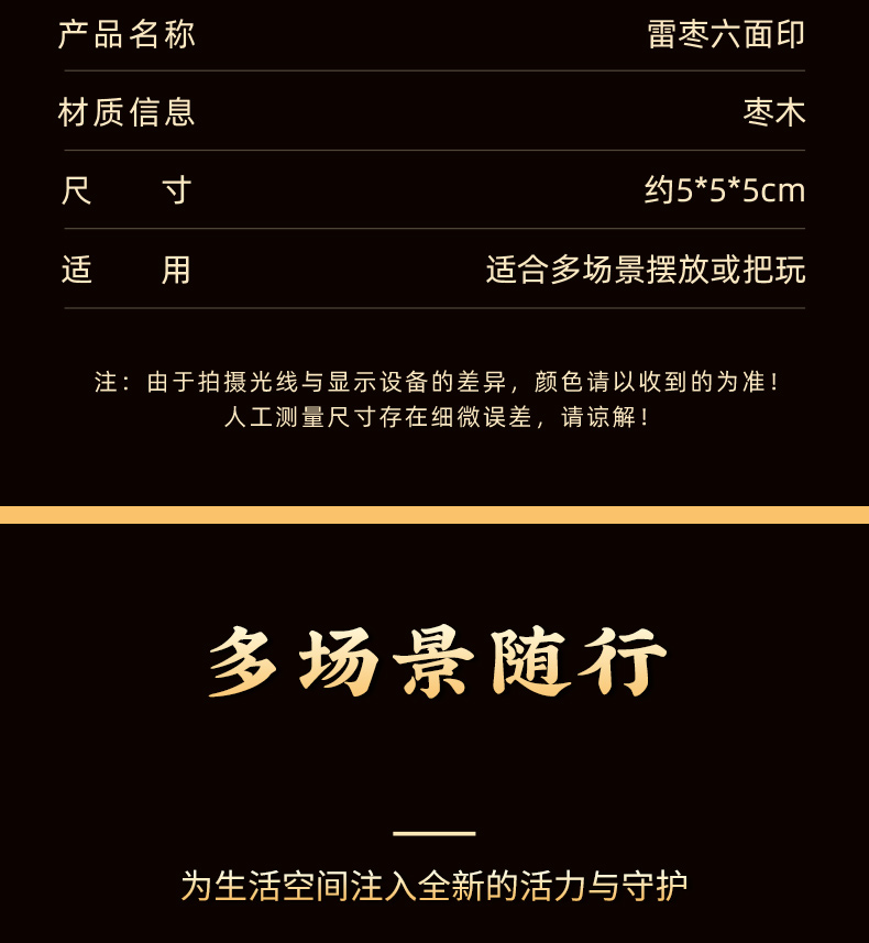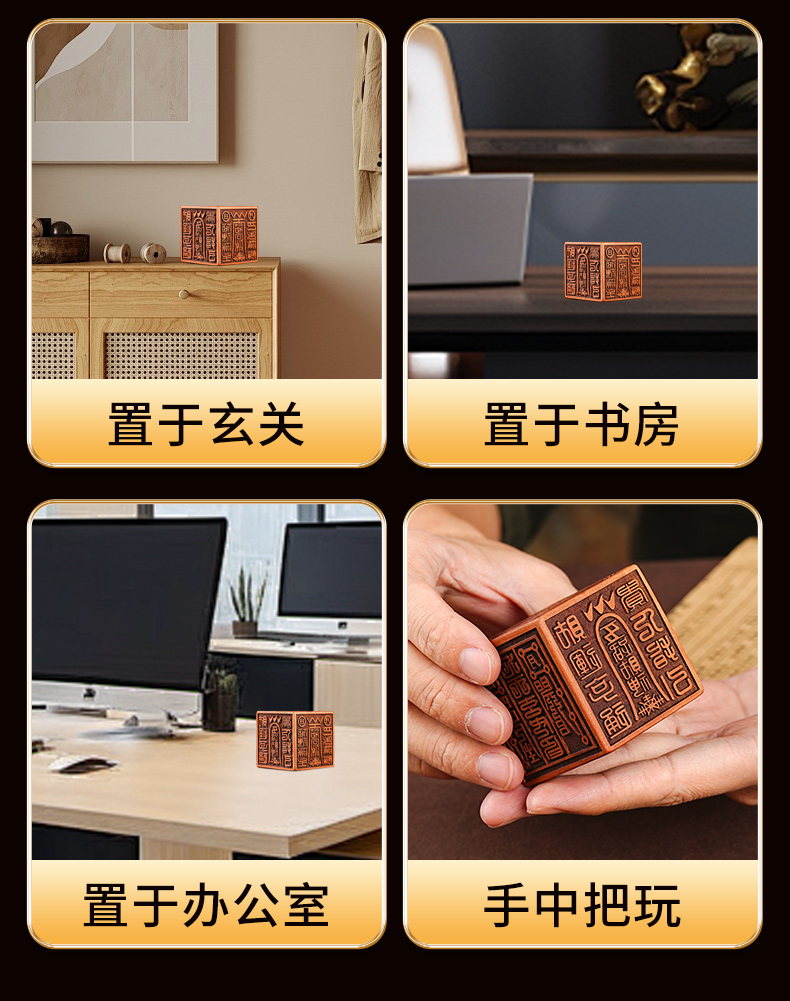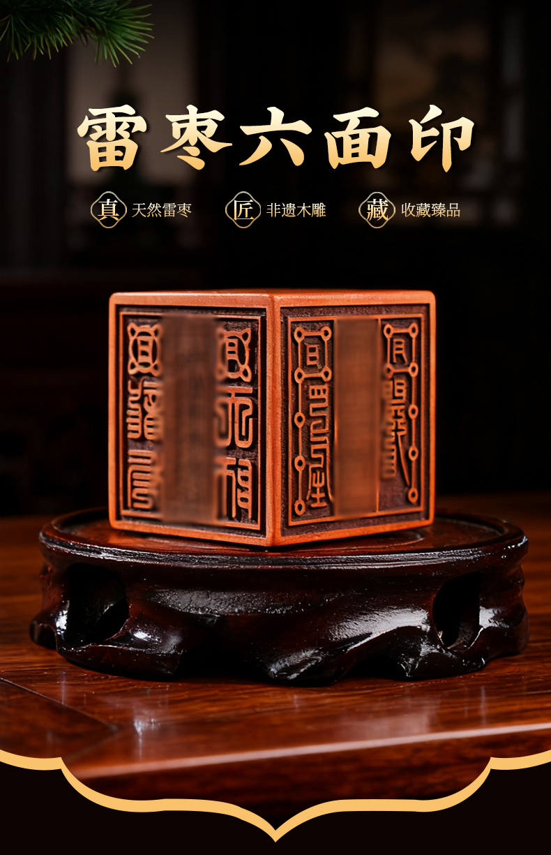 雷枣木六面印专属图案文字摆件木作饰品文玩家用装饰品