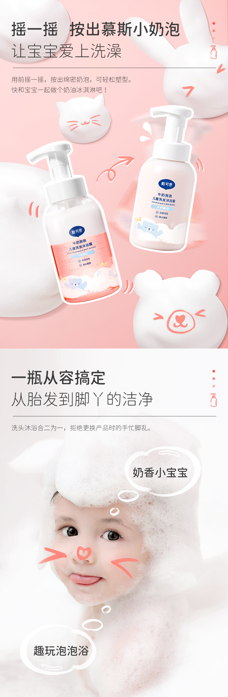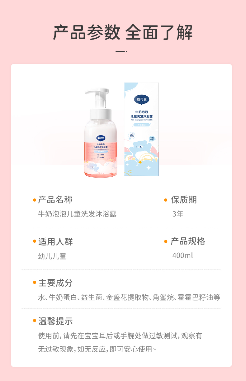 戴可思泡泡牛奶洗发沐浴露400ml