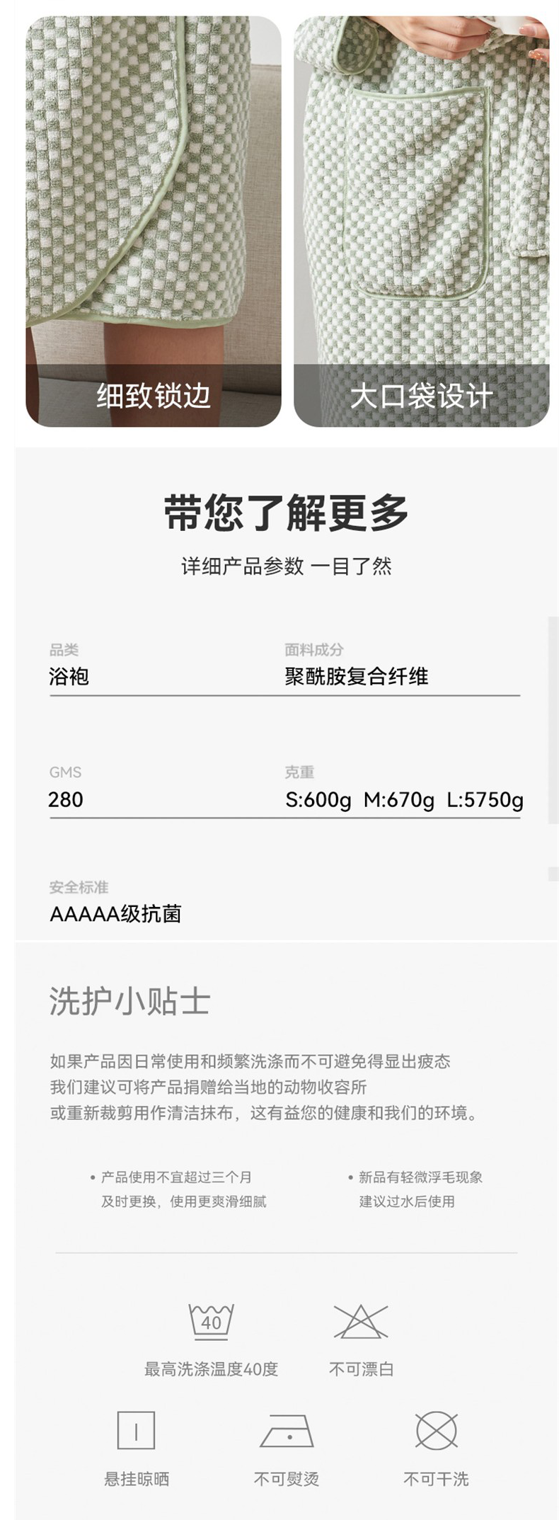 三利5A抗菌浴袍轻柔吸水速干珊瑚绒浴衣洗澡浴袍可穿可裹大浴巾