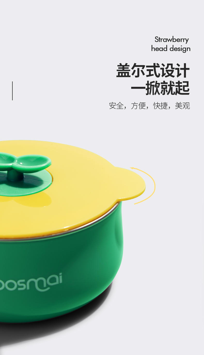 宝斯迈草莓不锈钢辅食碗(颜色随机发货)