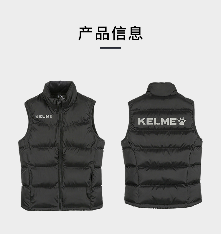 小李子正品KELME卡尔美足球运动训练棉马甲成人男8261MJ1007000