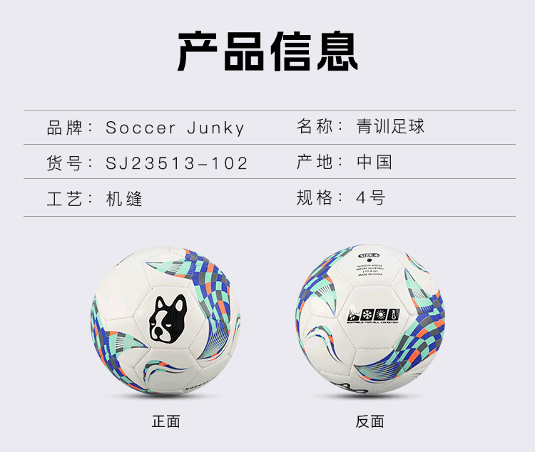 小李子Soccer Junky足球青少年比赛训练机缝4号球儿童男SJ23513-102