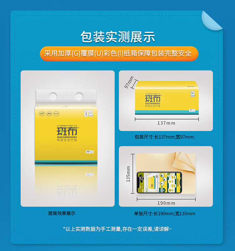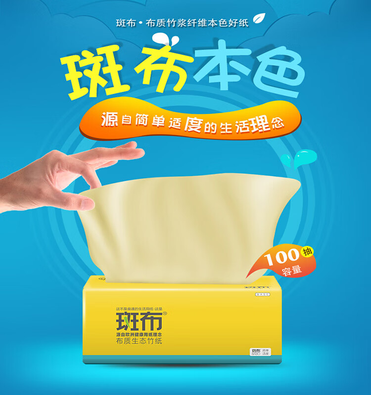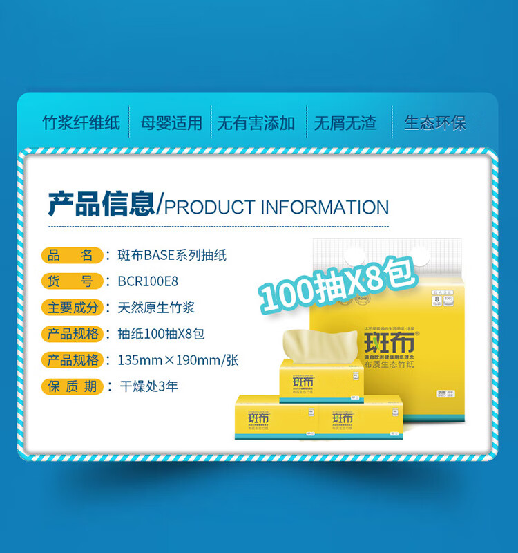 斑布软抽 抽纸纸巾3层8包*100抽/提