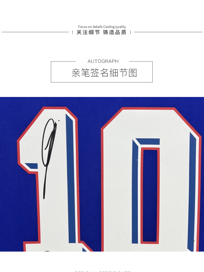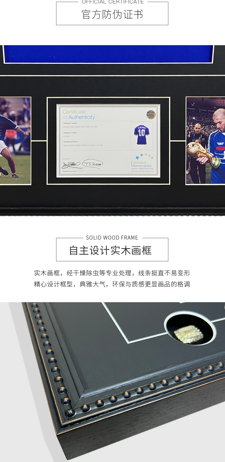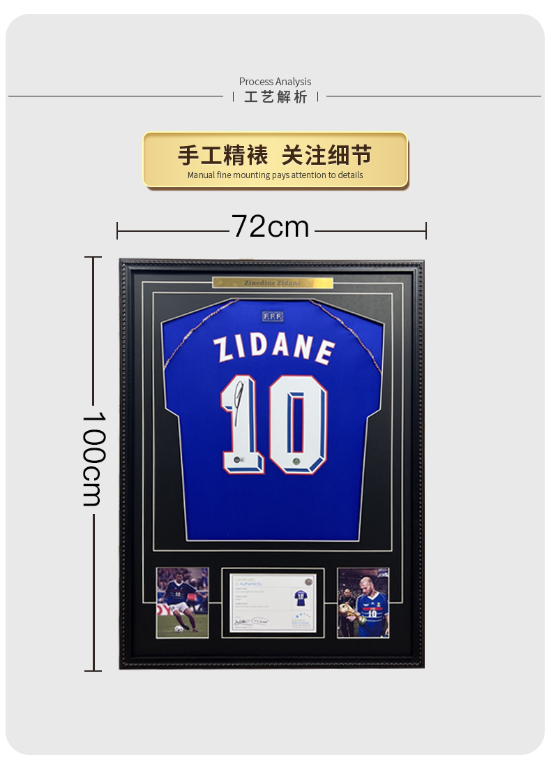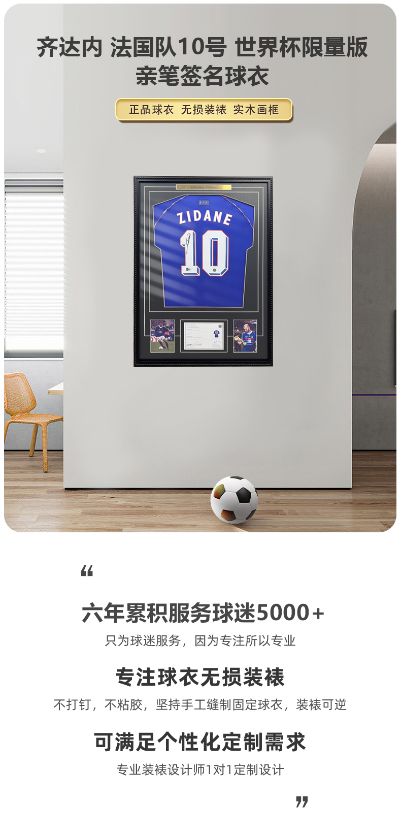 收藏系列 齐达内 法国队10号 世界杯限量版 亲笔签名球衣