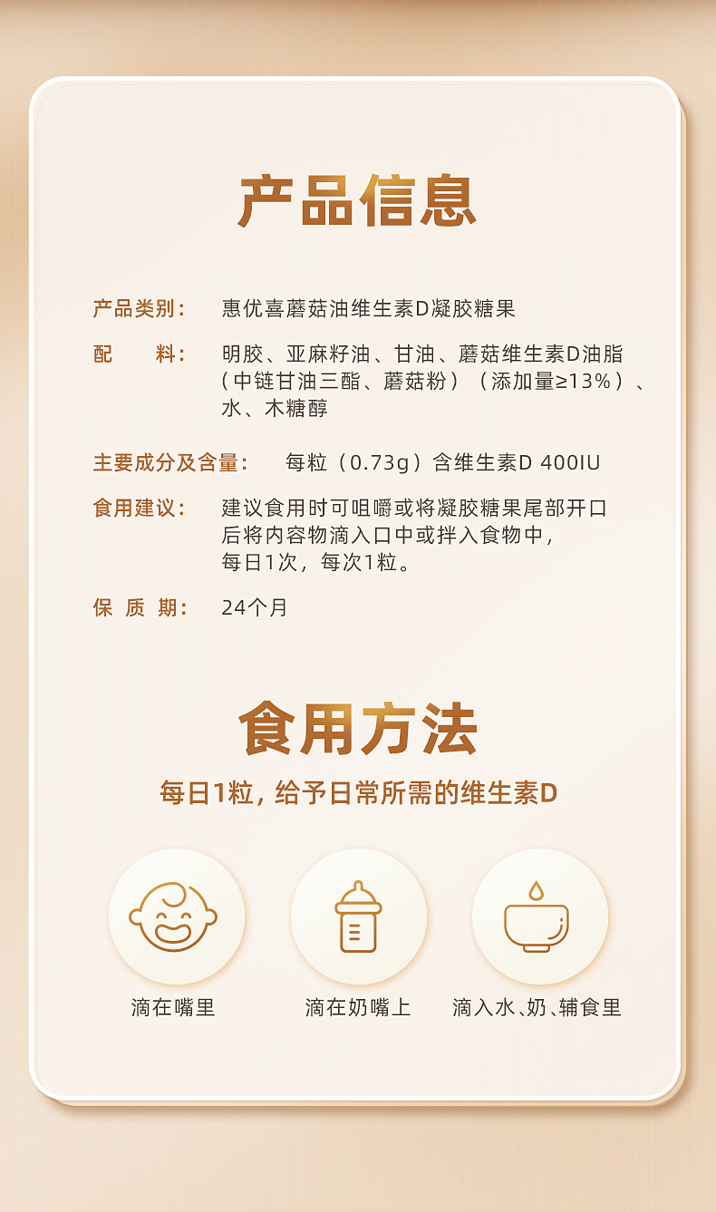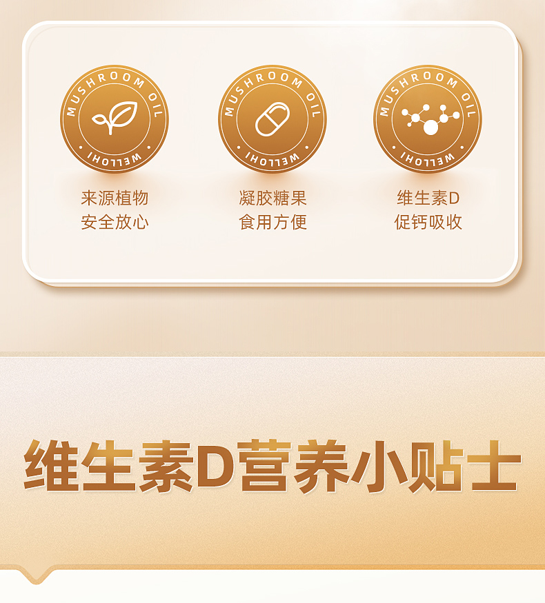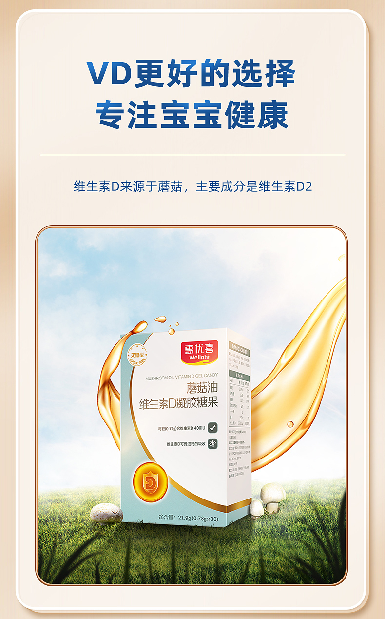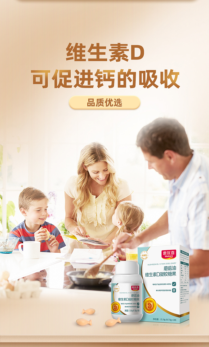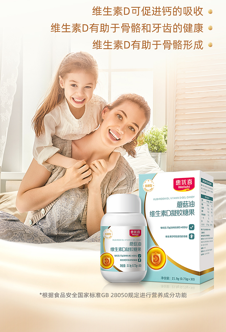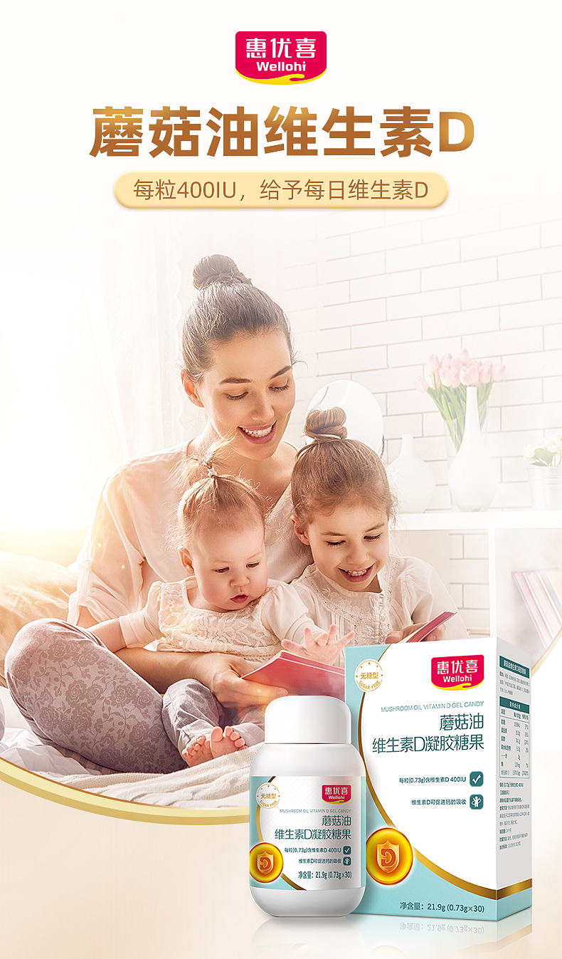 惠优喜蘑菇油维生素D凝胶糖果30粒