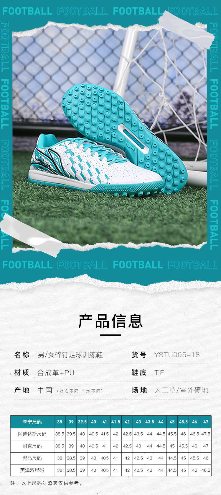 小李子Lining李宁锦系列中端TF碎钉成人足球训练鞋男YSTU005-18