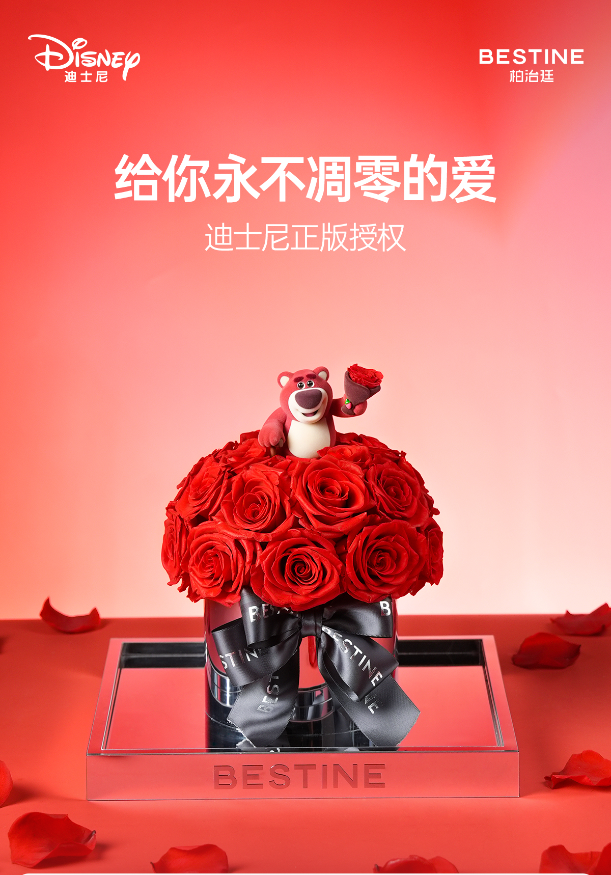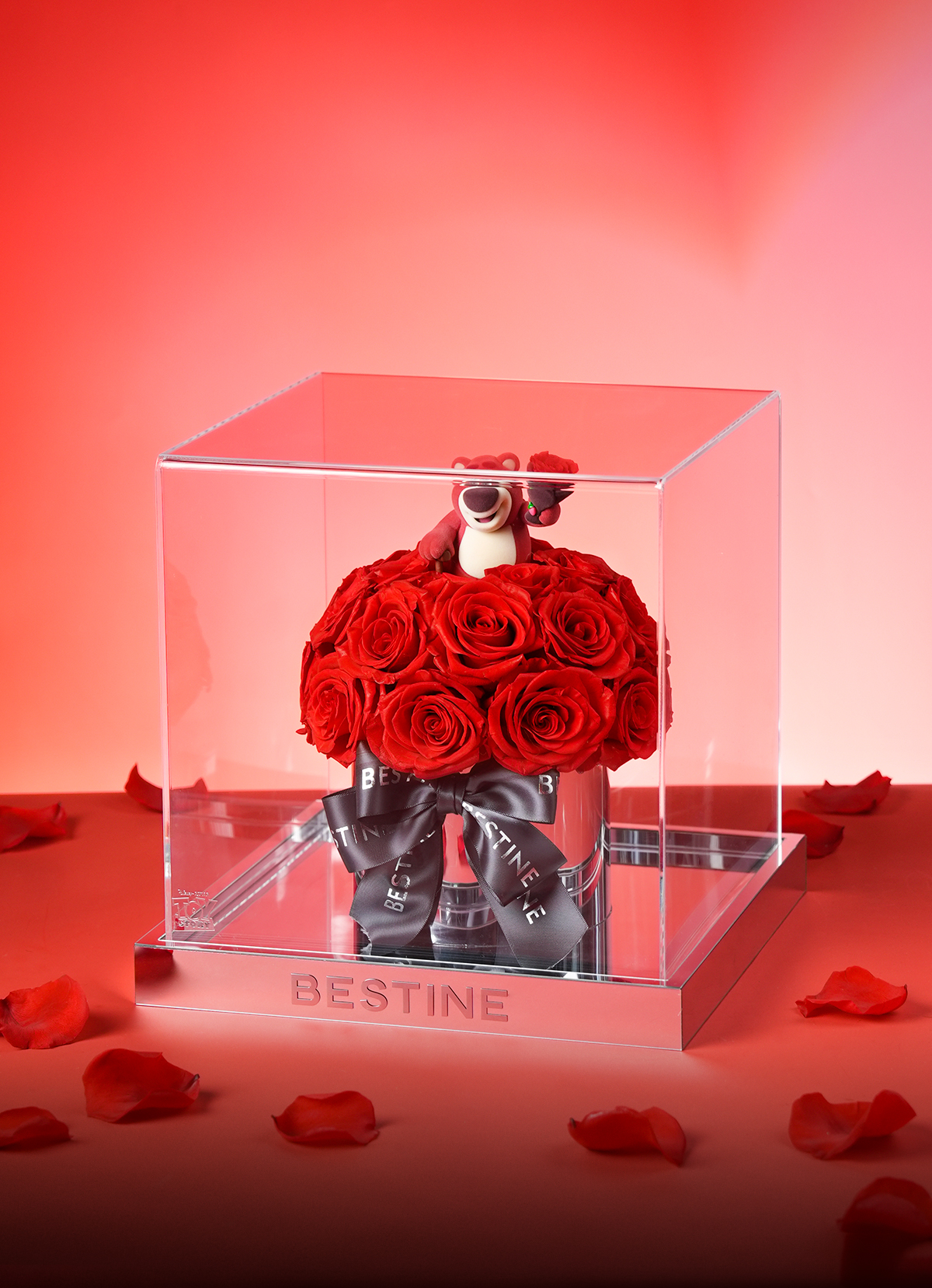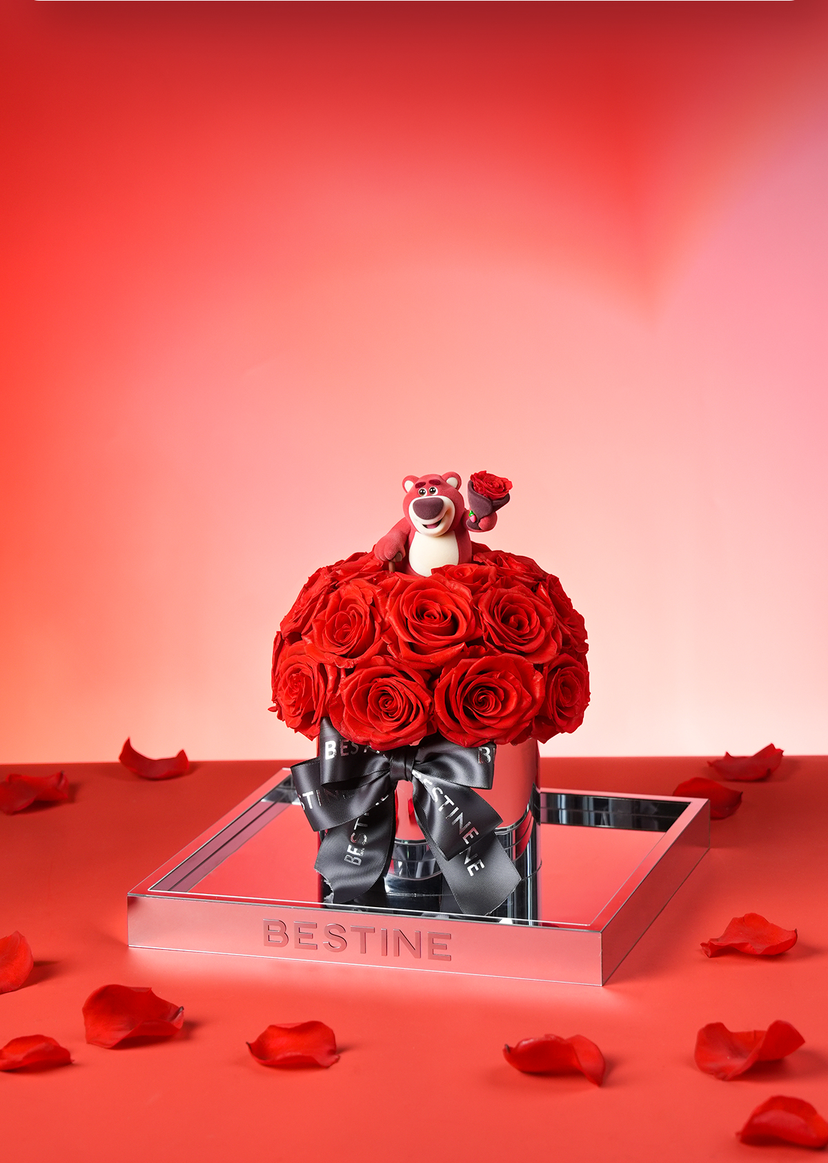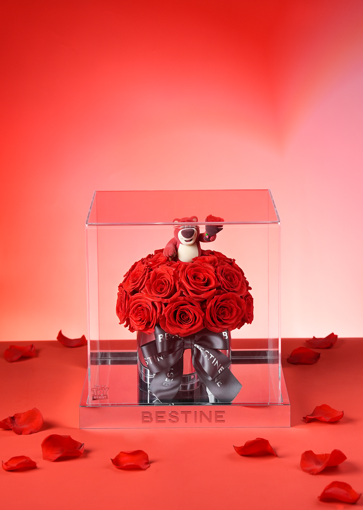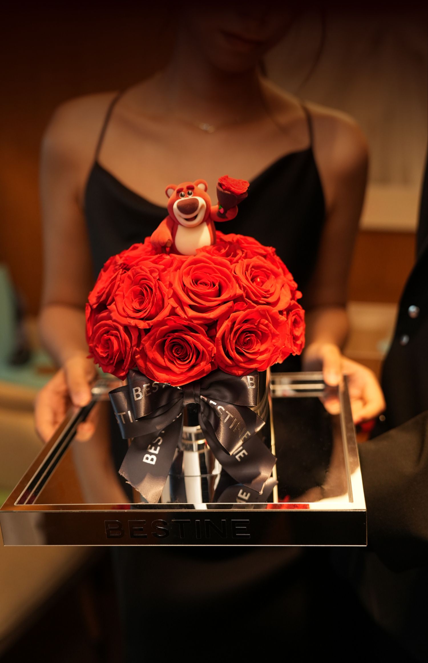 VBEINGS花语 草莓熊 玫瑰花束抱抱桶 草莓熊永生花玫瑰抱抱桶花束摆件礼盒生日