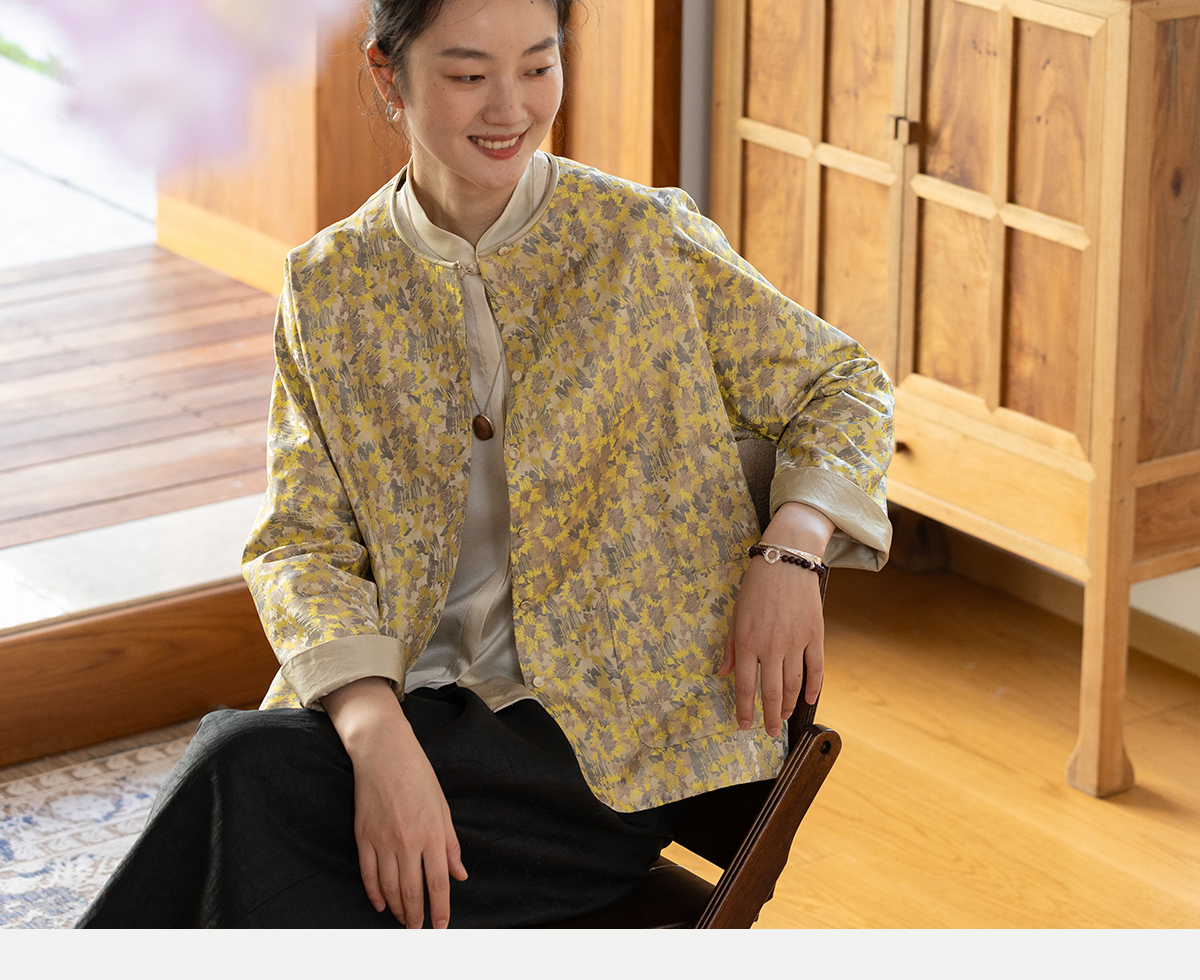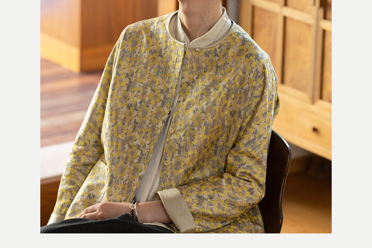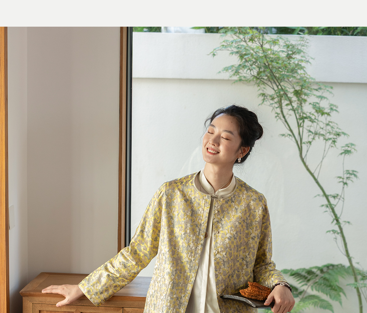 牧衣游原创 重磅30姆米迎春花织锦开衫真丝复古新中式外套 入寂