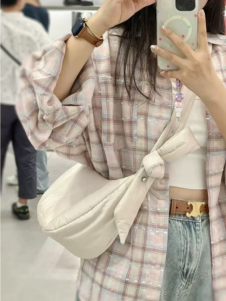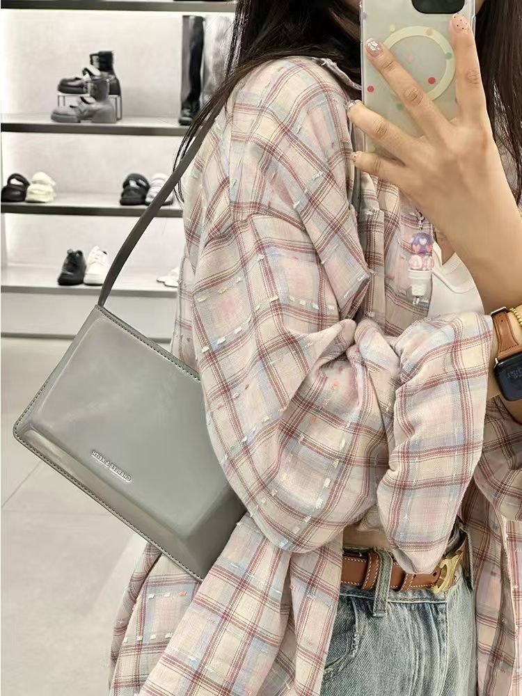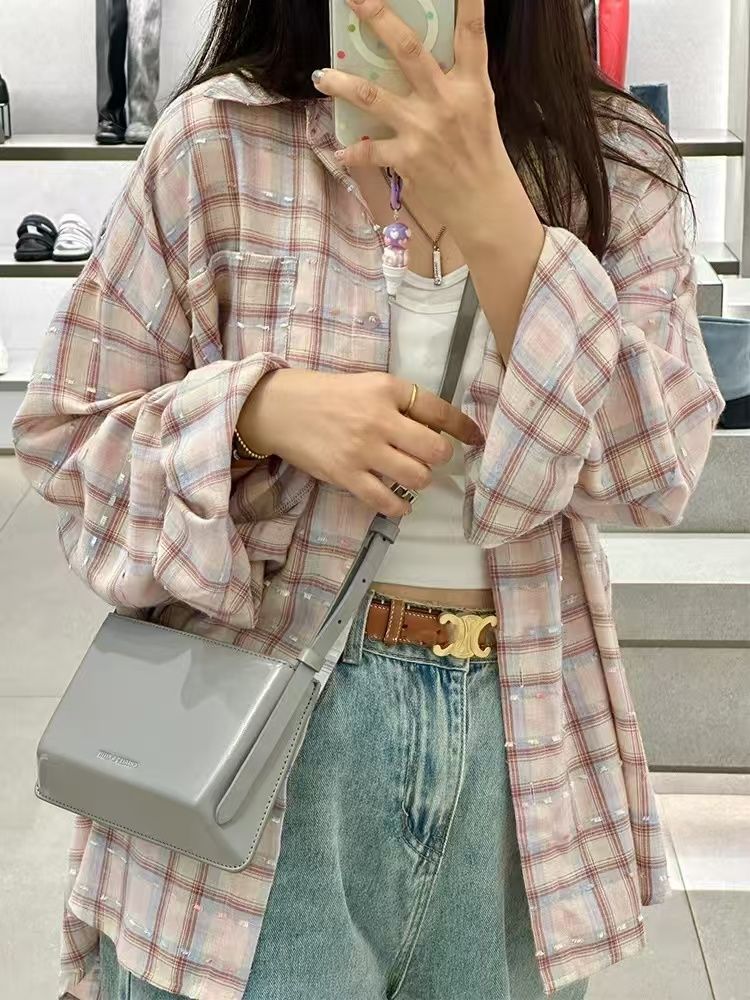 新品上市多巴胺甜美粉色格子衬衫女ins开春休闲遮肉长袖上衣内搭外穿韩系小红书同款