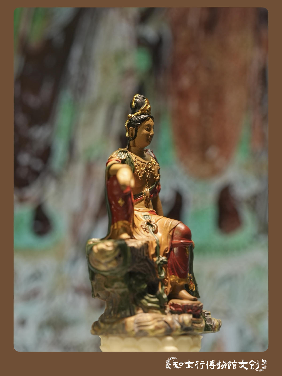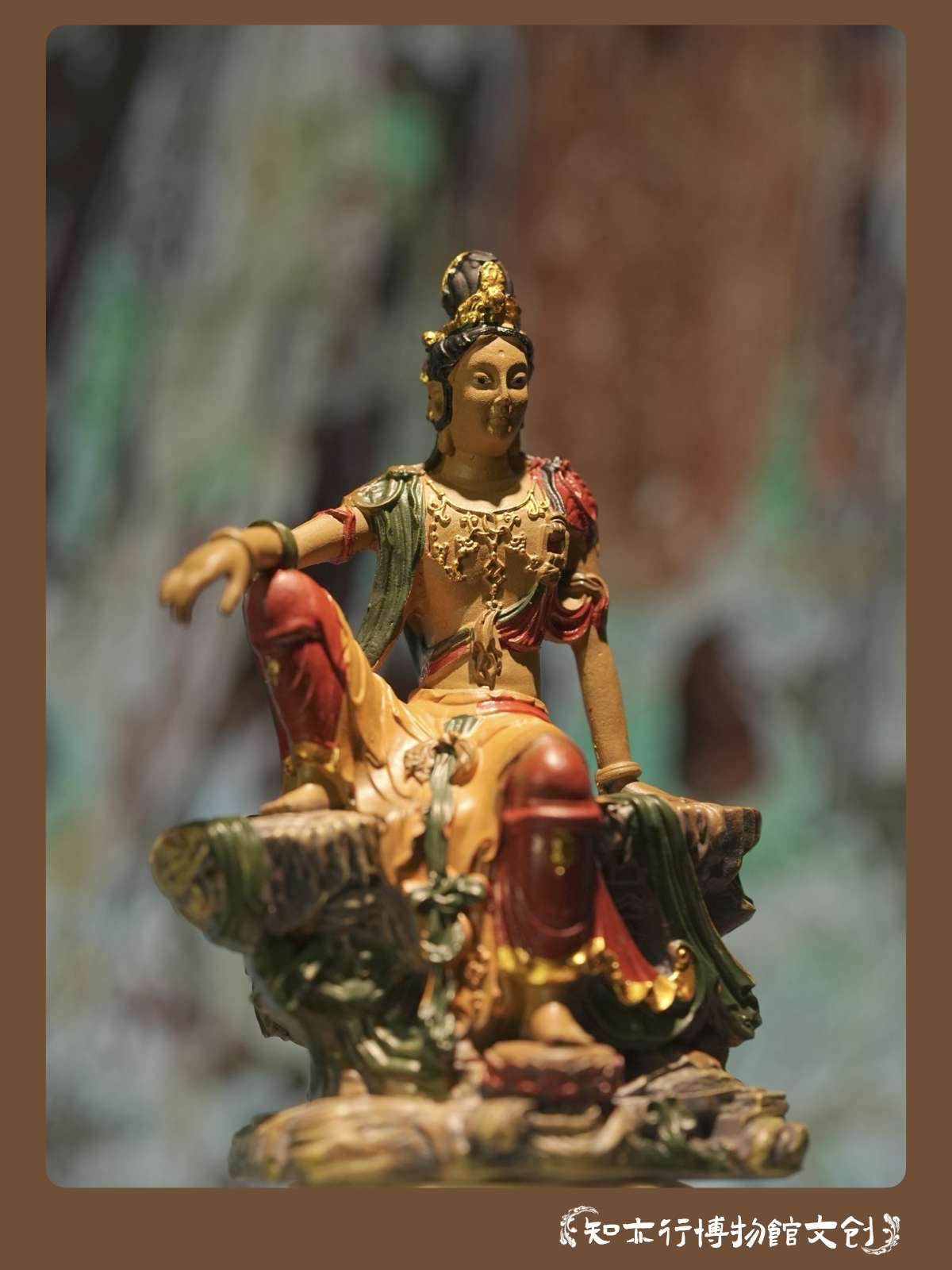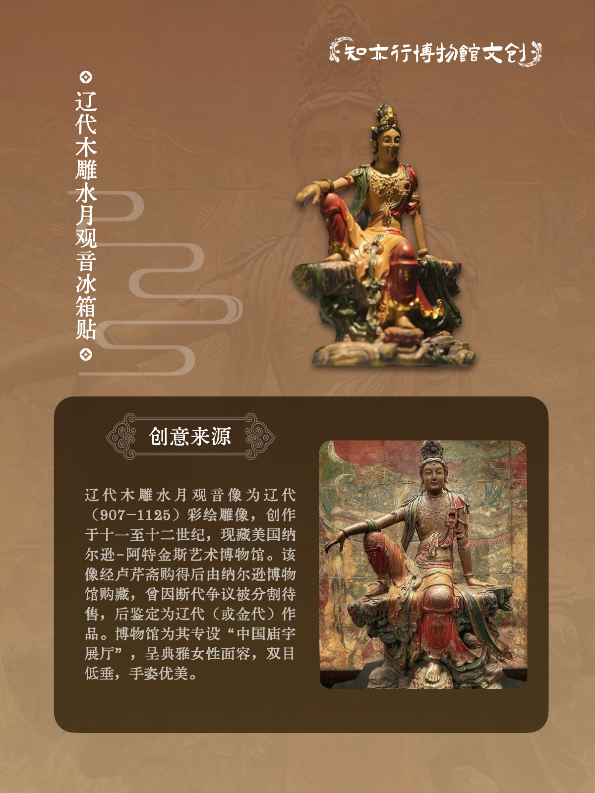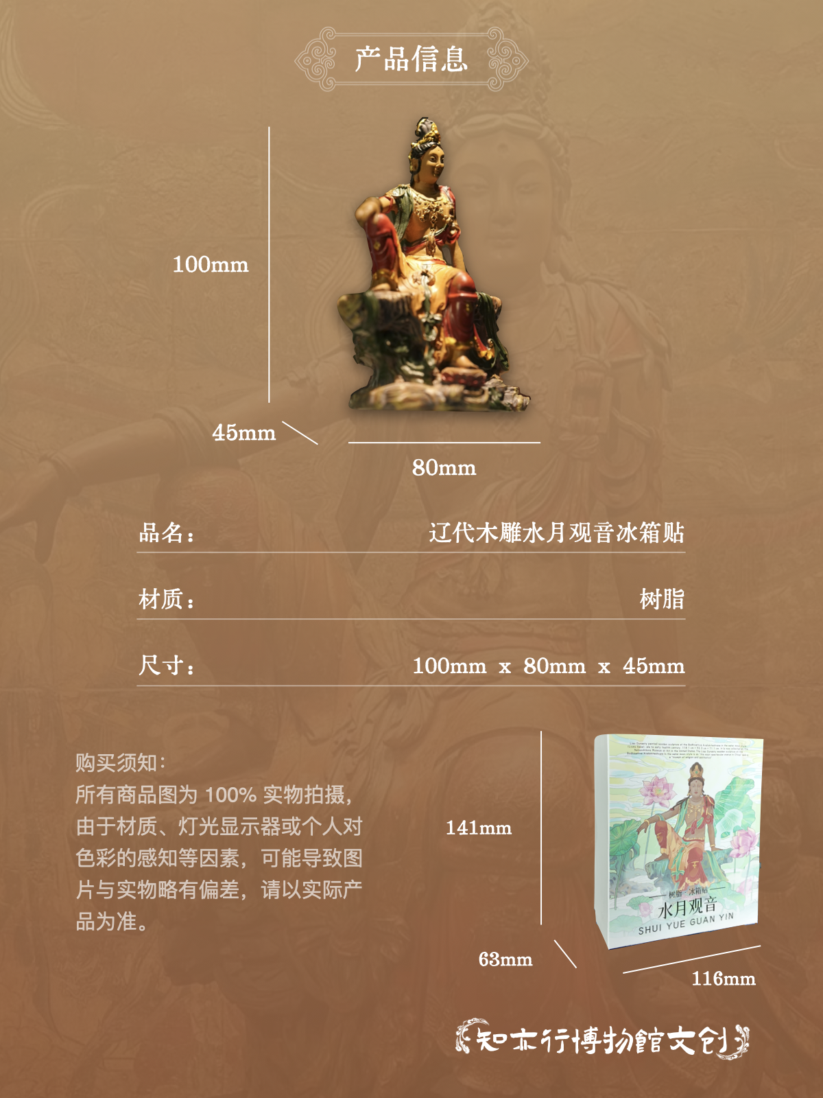 辽代木雕水月观音冰箱贴桌面摆件树脂材质精美文创礼品