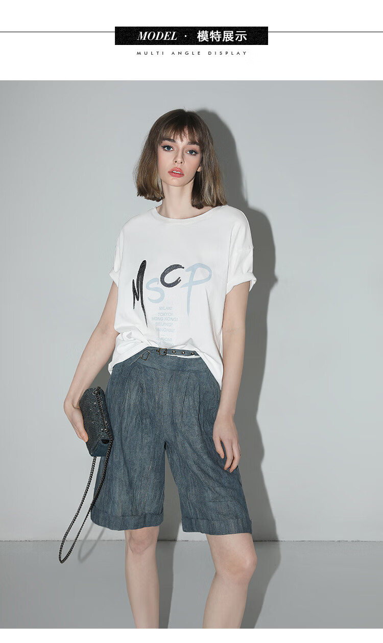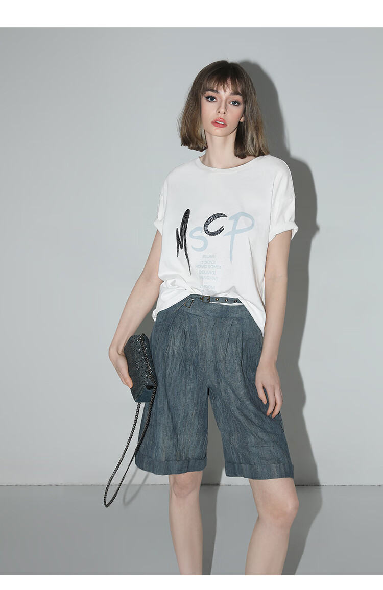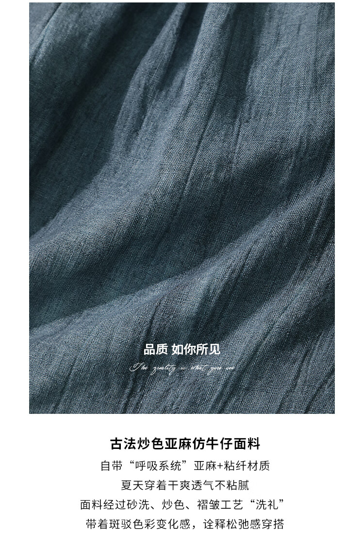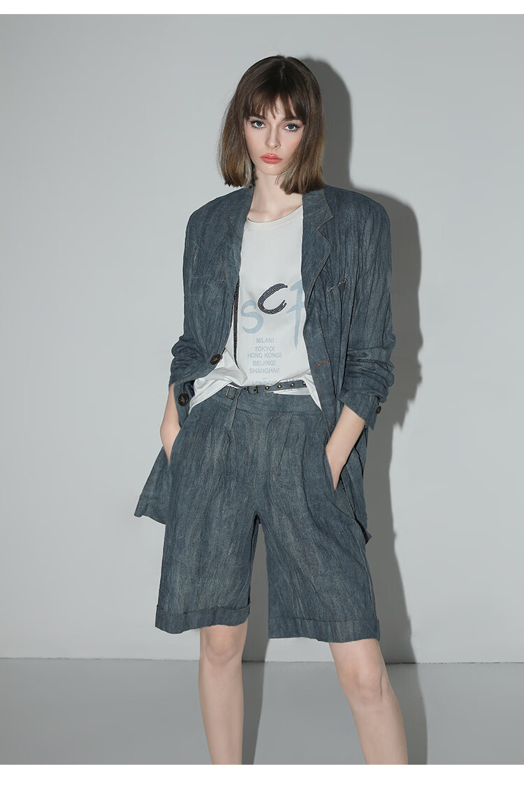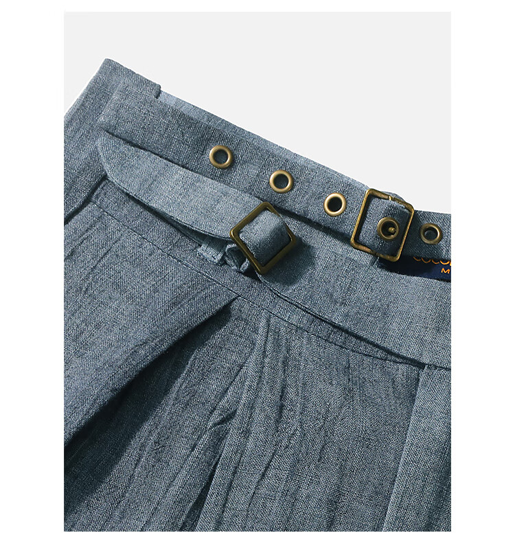 【有赞】COCOBELLA砂洗炒色亚麻短裤设计感双腰带牛仔风打褶裤SO0002