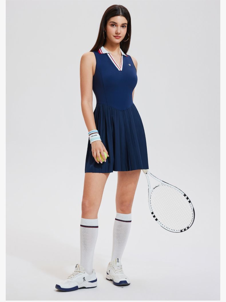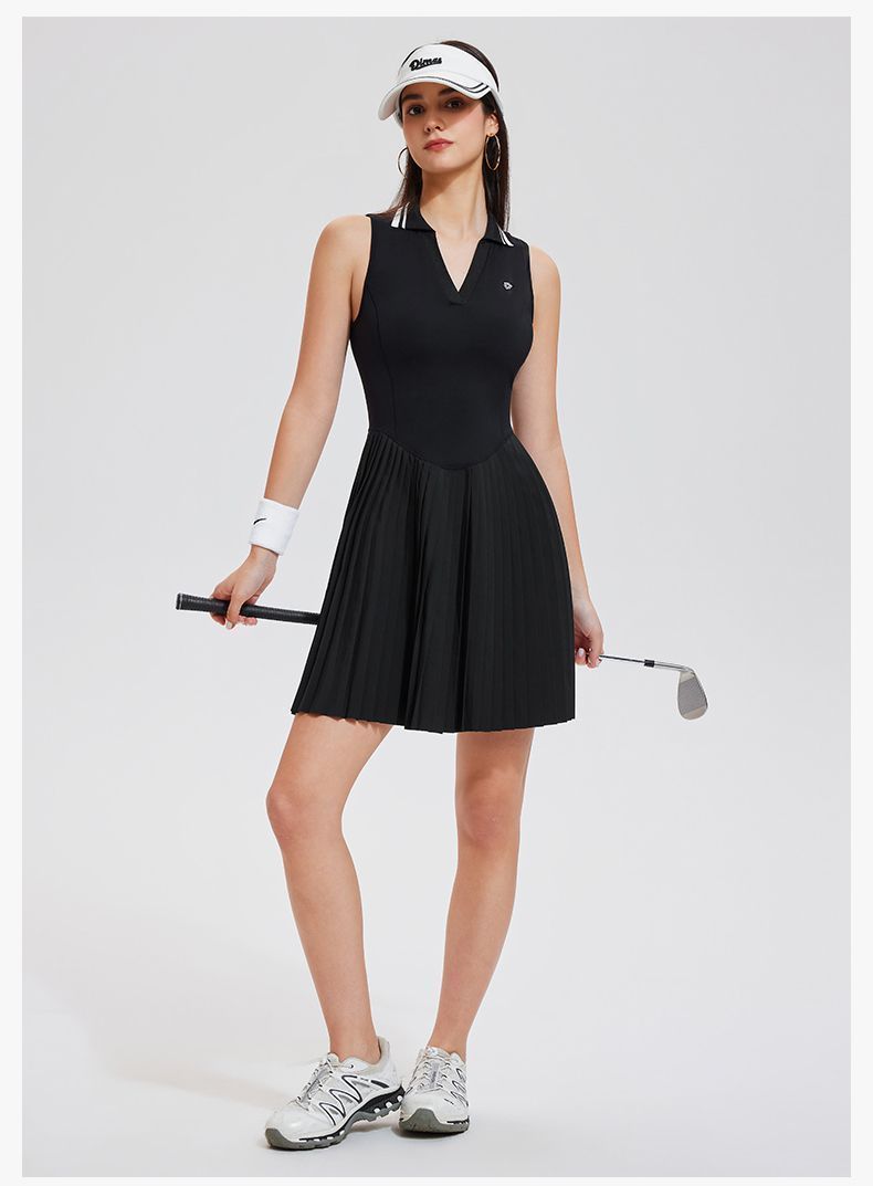 【2025上新】科里芙运动夏季时尚V领百搭收腰显瘦通勤休闲无袖连衣裙