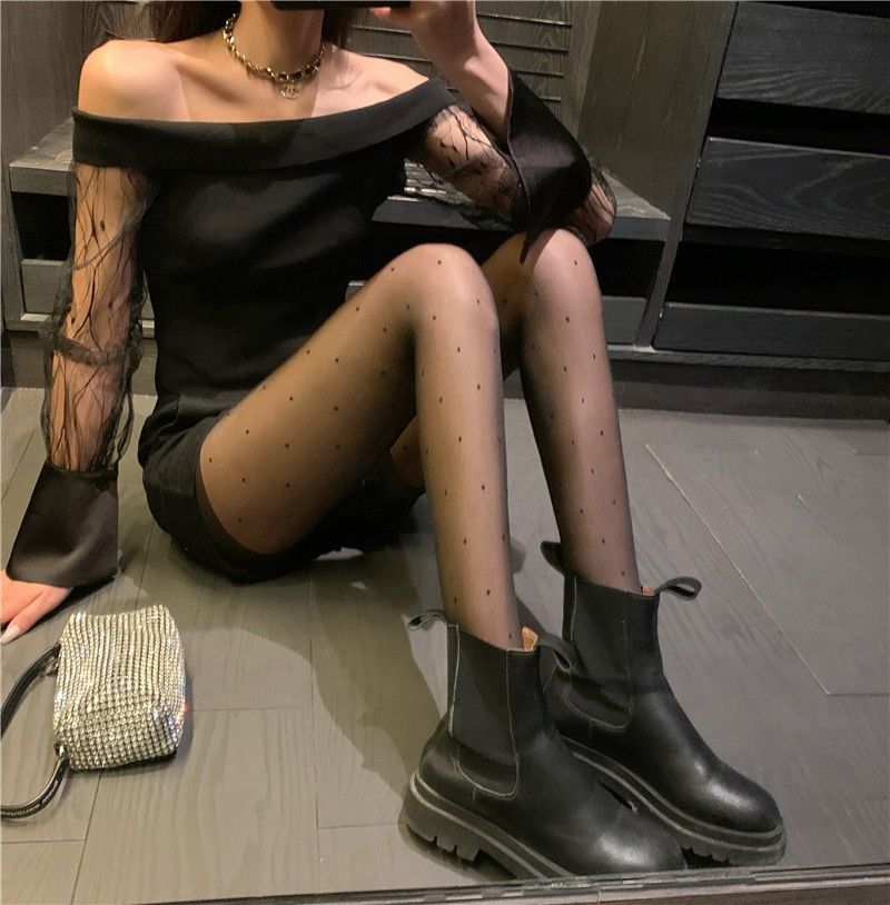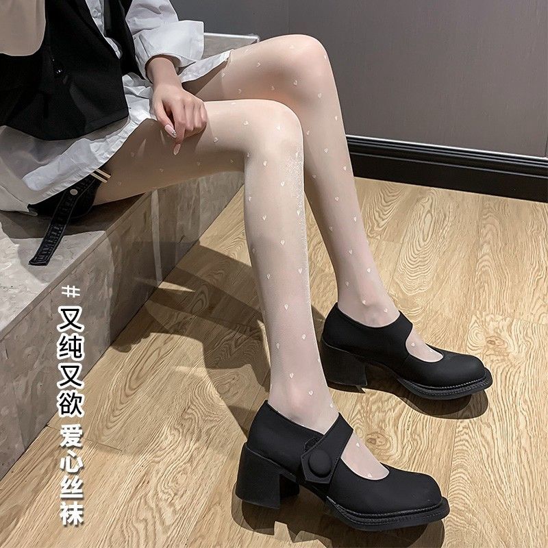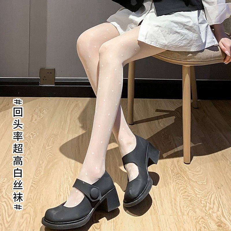 明星杨幂同款复古波圆点丝袜日系春秋夏爱心黑jk薄款防勾丝连裤袜
