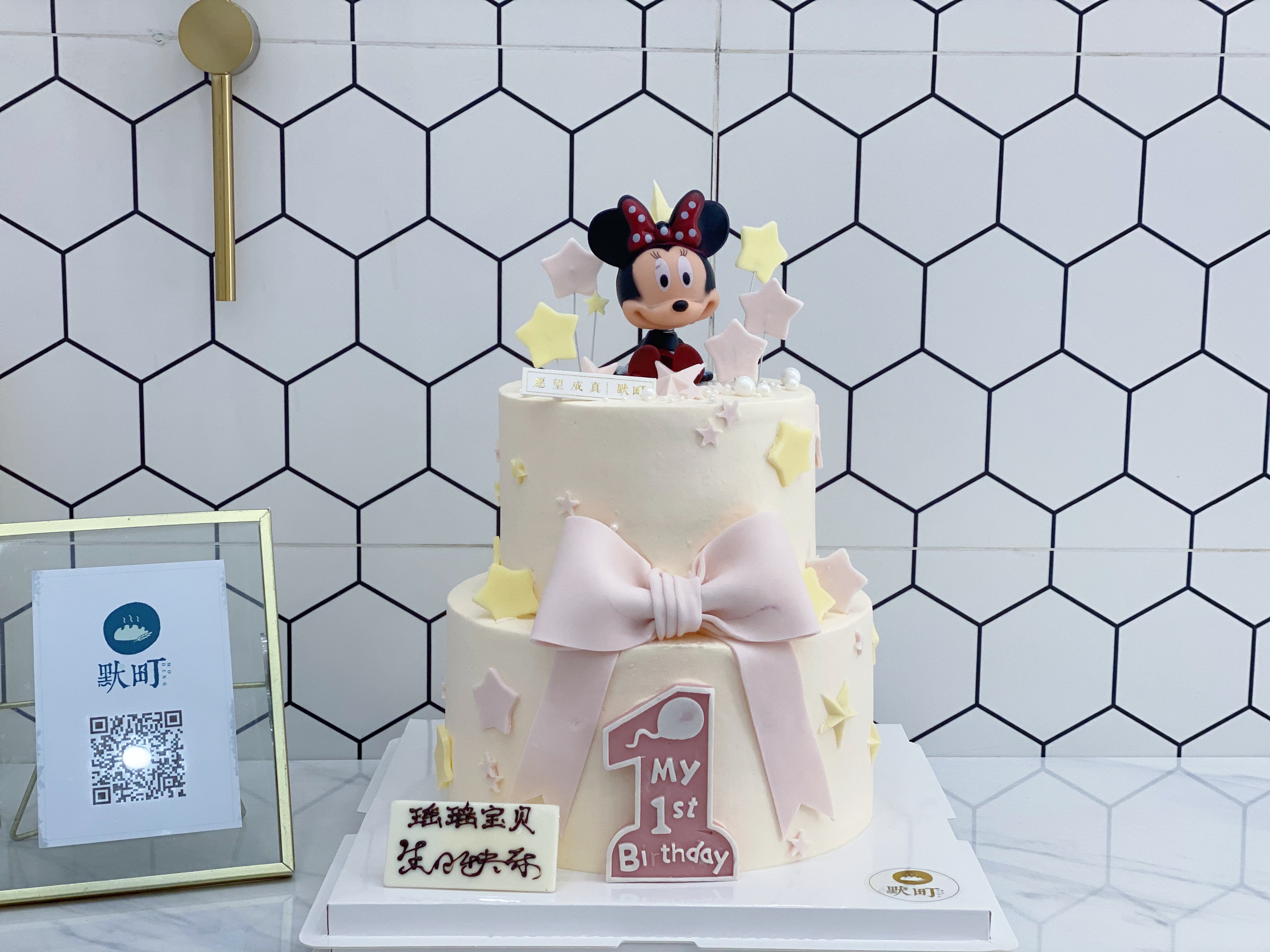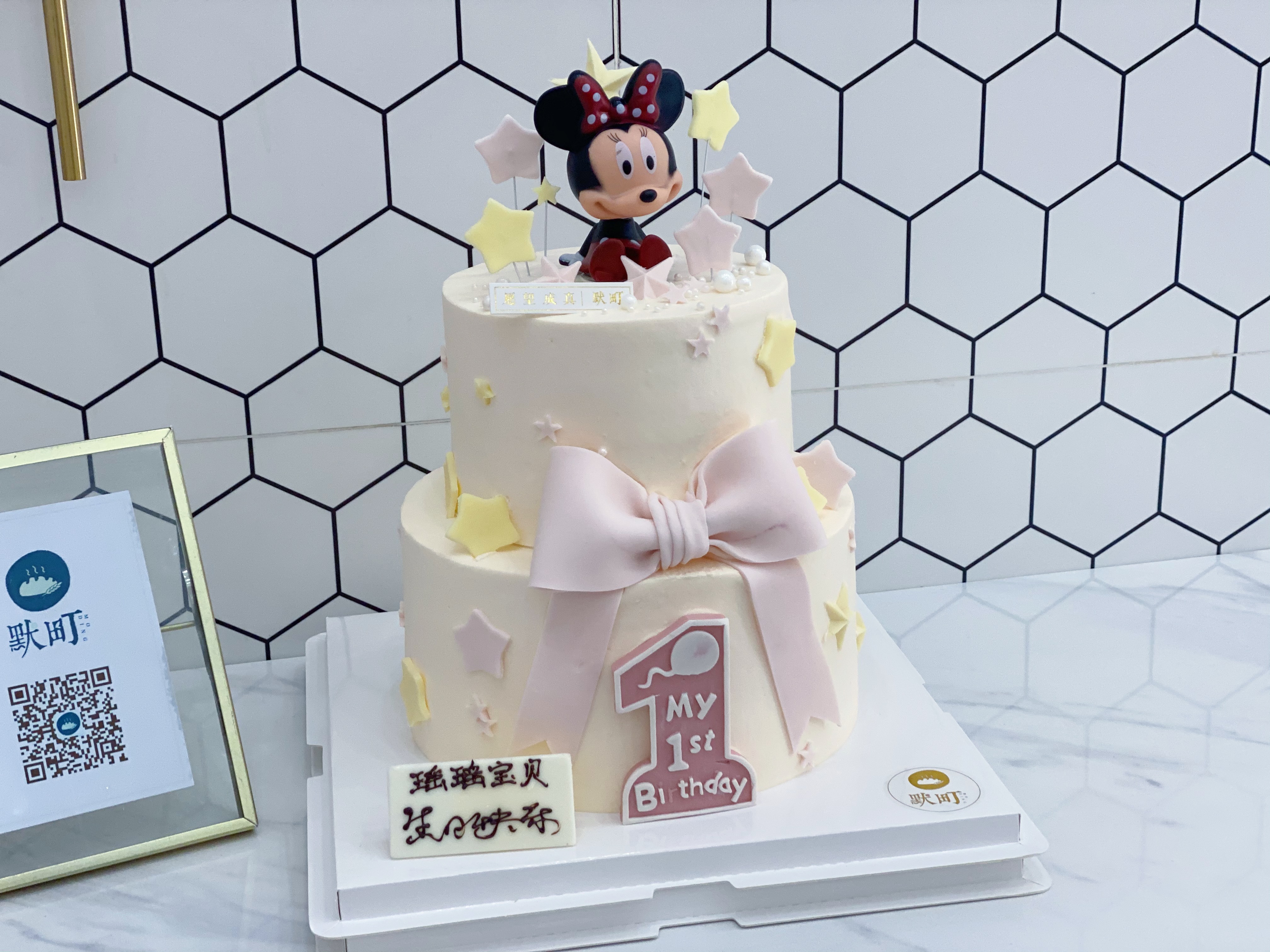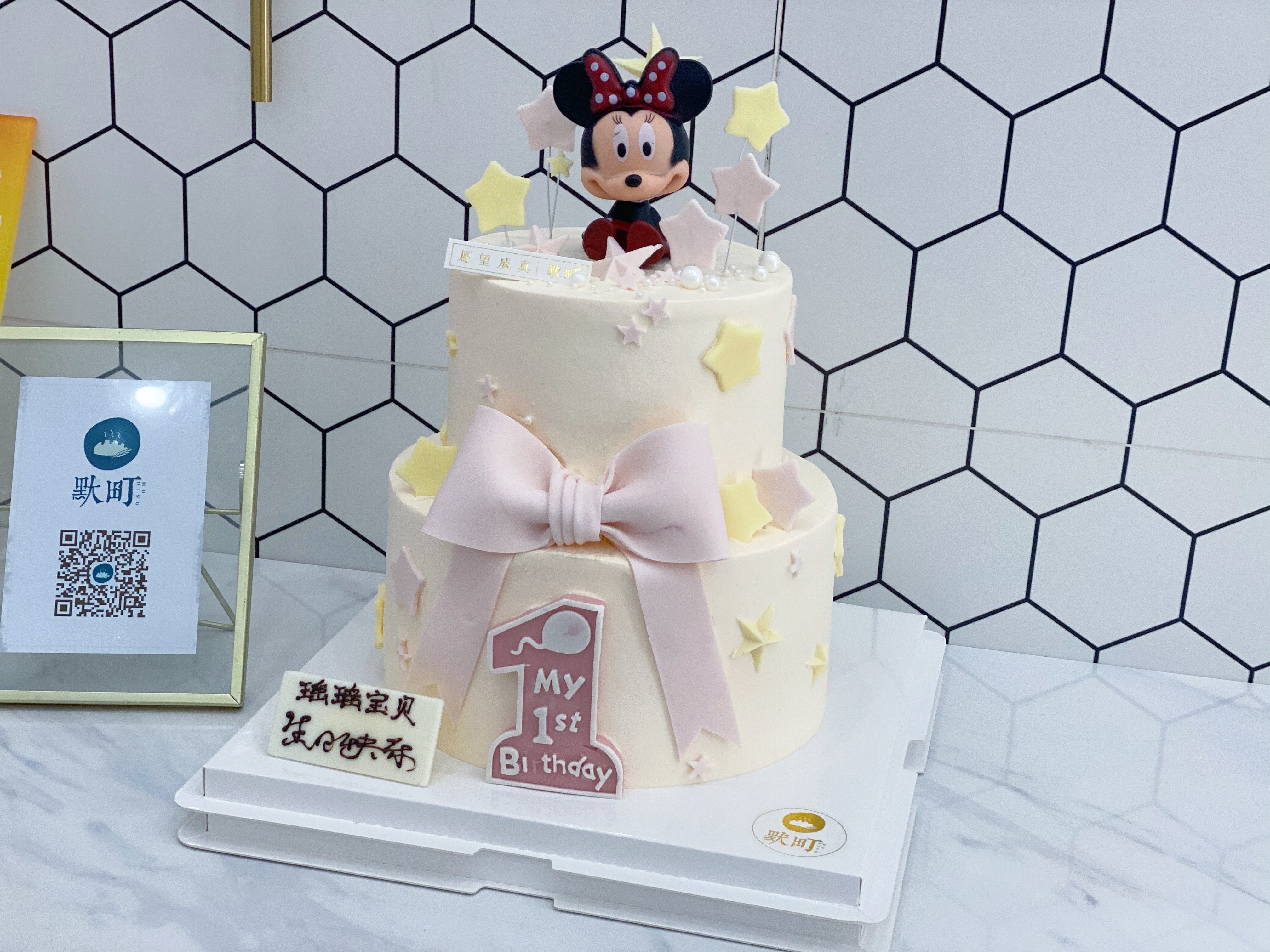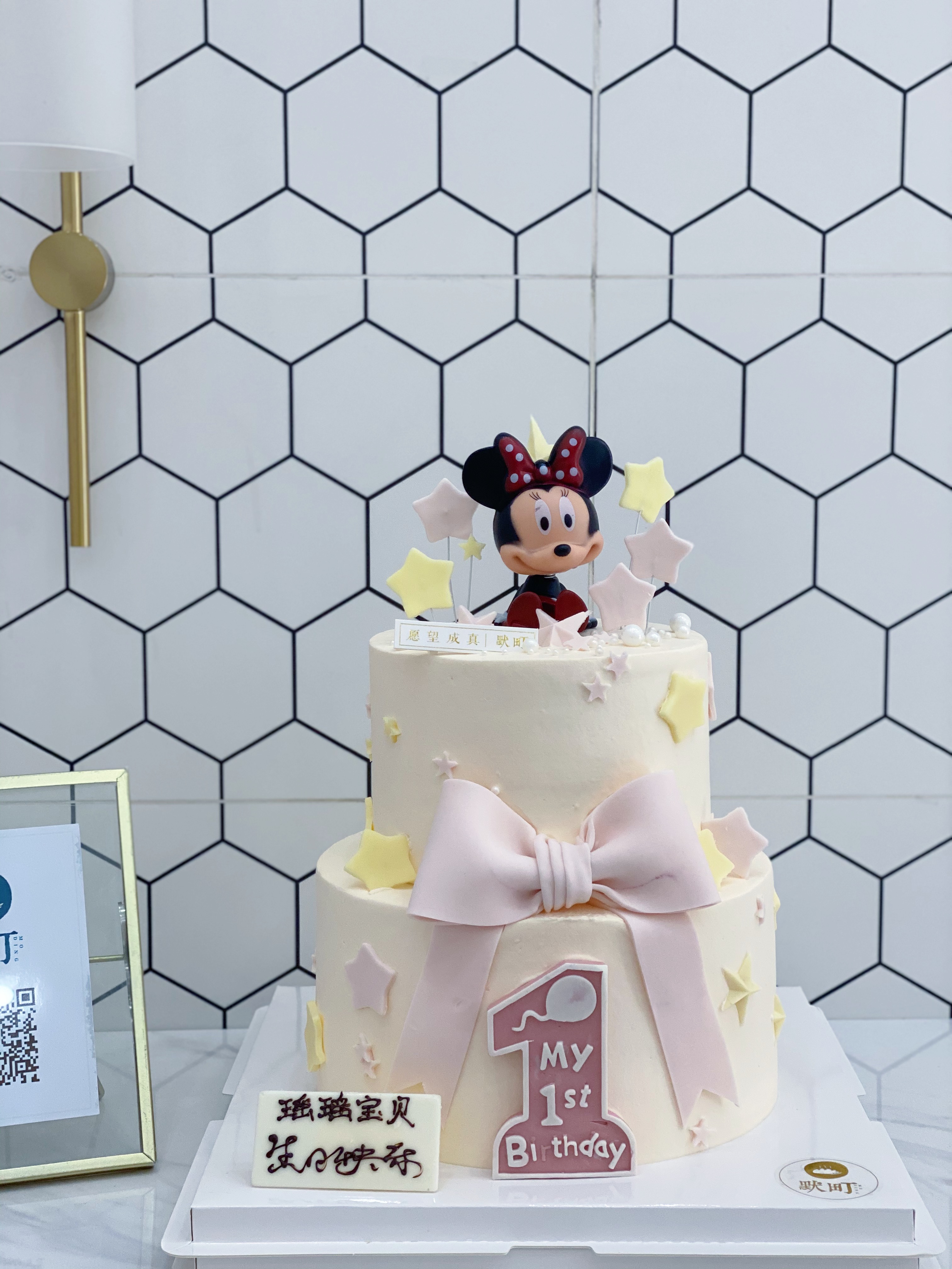 米妮蝴蝶结翻糖周岁蛋糕(数字1可更改,请备注)