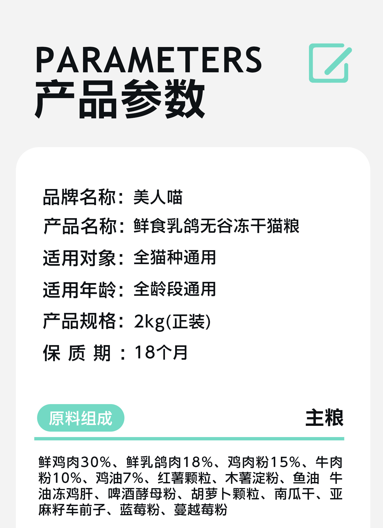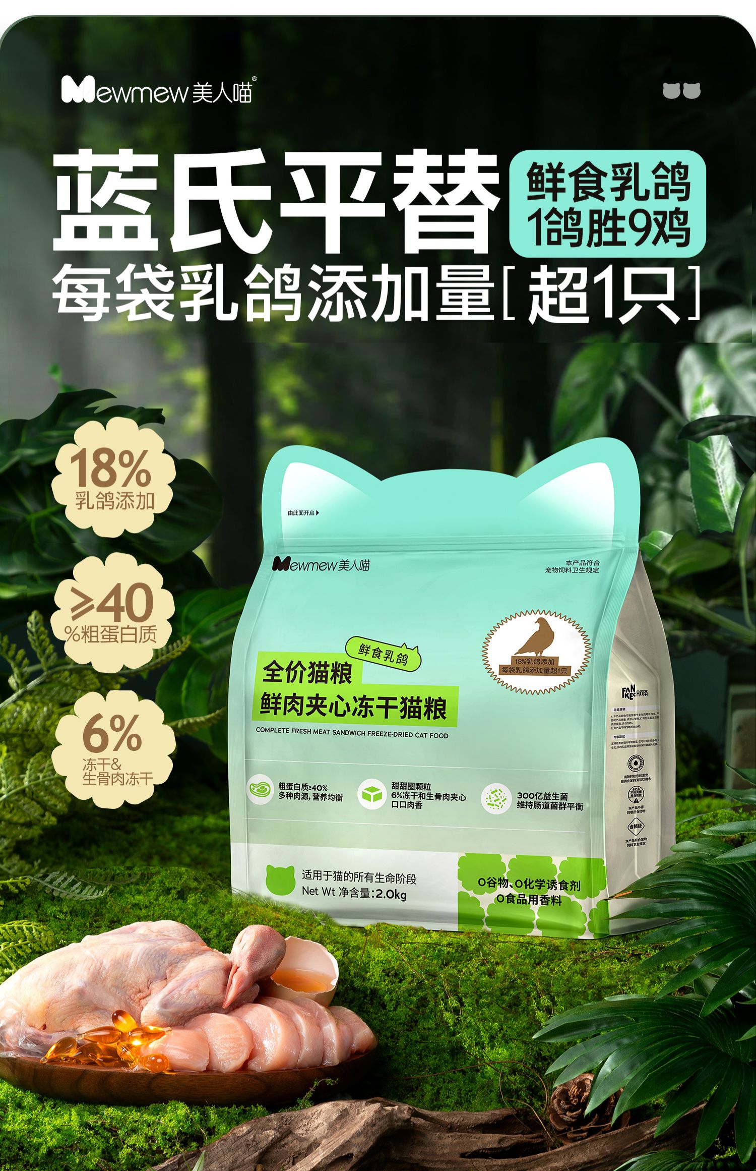 美人喵 乳鸽鲜肉冻干夹心全价猫粮 2kg