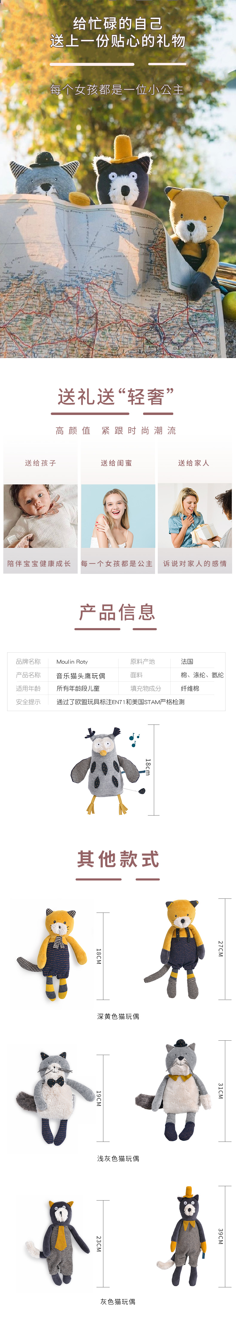 【预售】法国进口moulinroty胡须猫猫系列毛绒玩具可啃咬宝宝安抚玩偶公仔哄睡