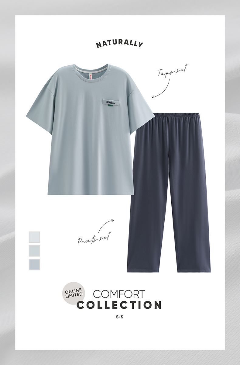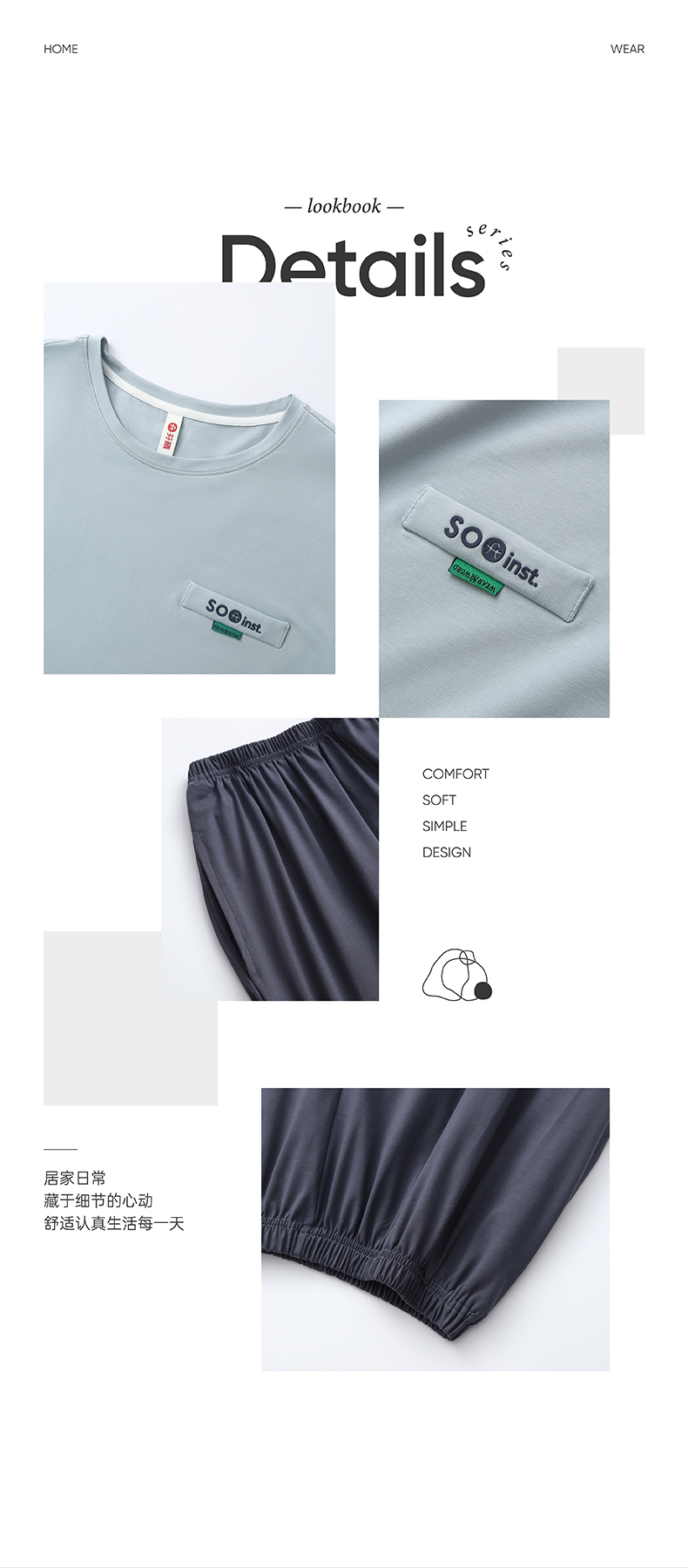 芬腾新款男士睡衣夏季短袖长裤圆领套头纯棉字母透气家居服套装