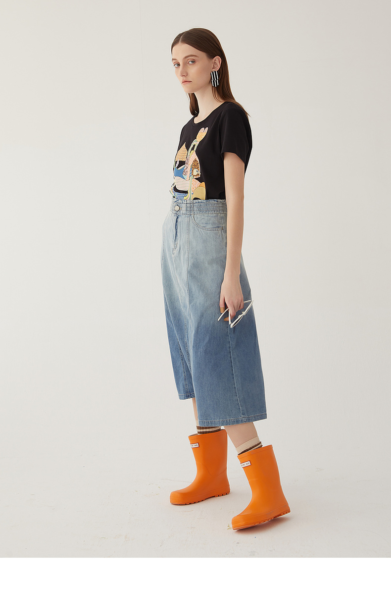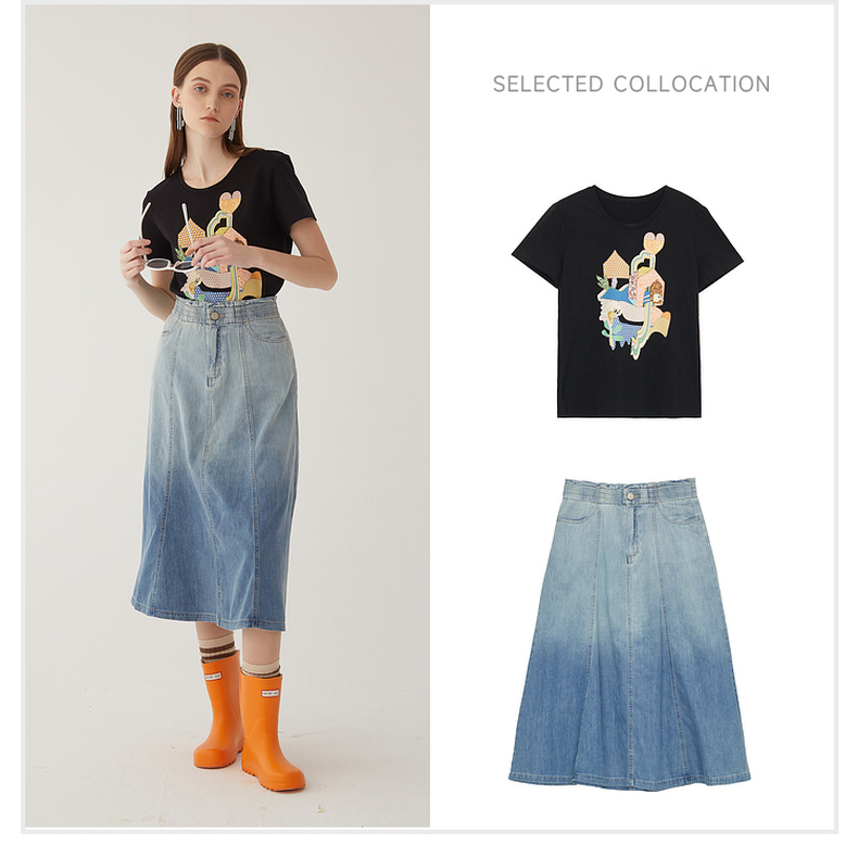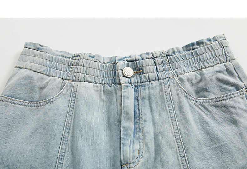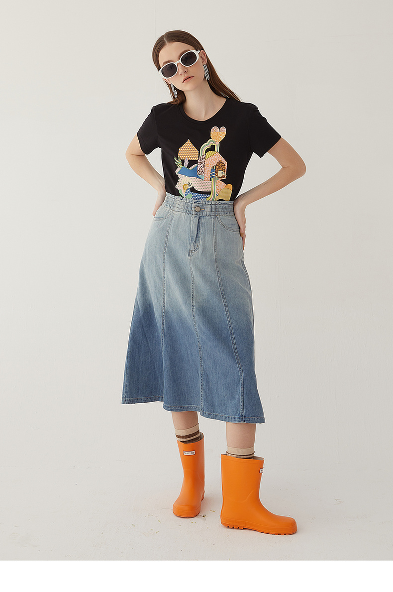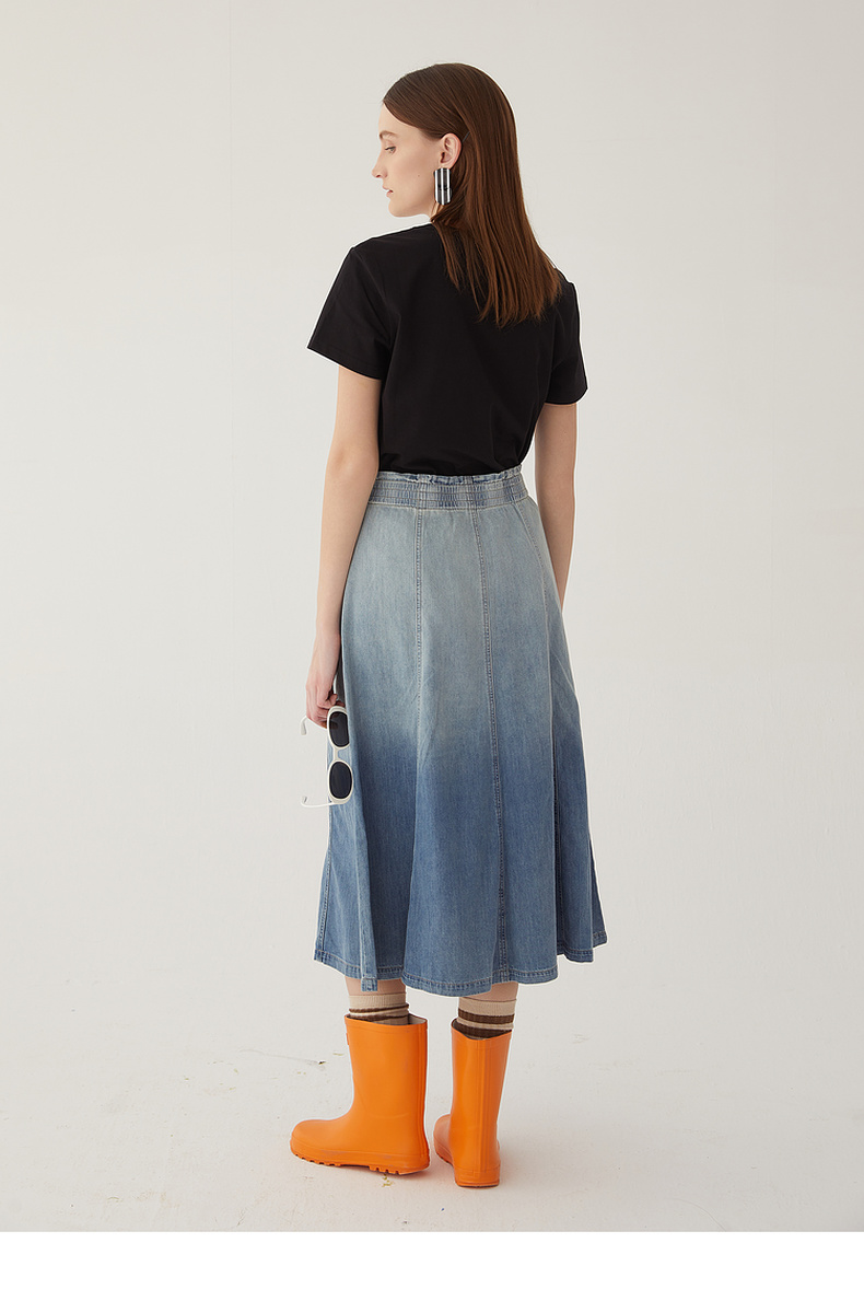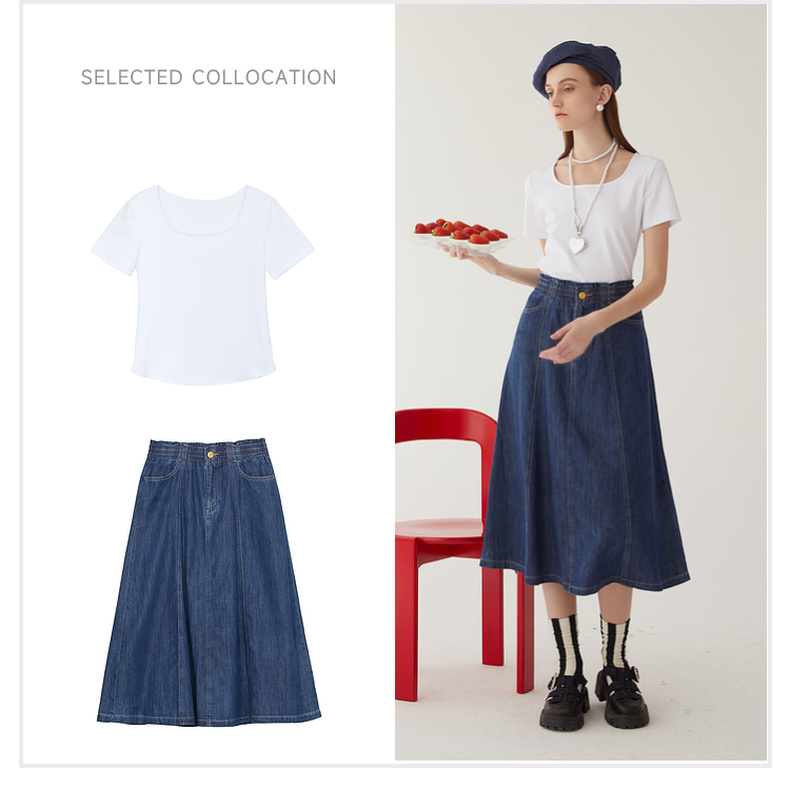 谜底气质牛仔半身裙2024夏季新款复古高腰A型长裙松紧腰246MB7003