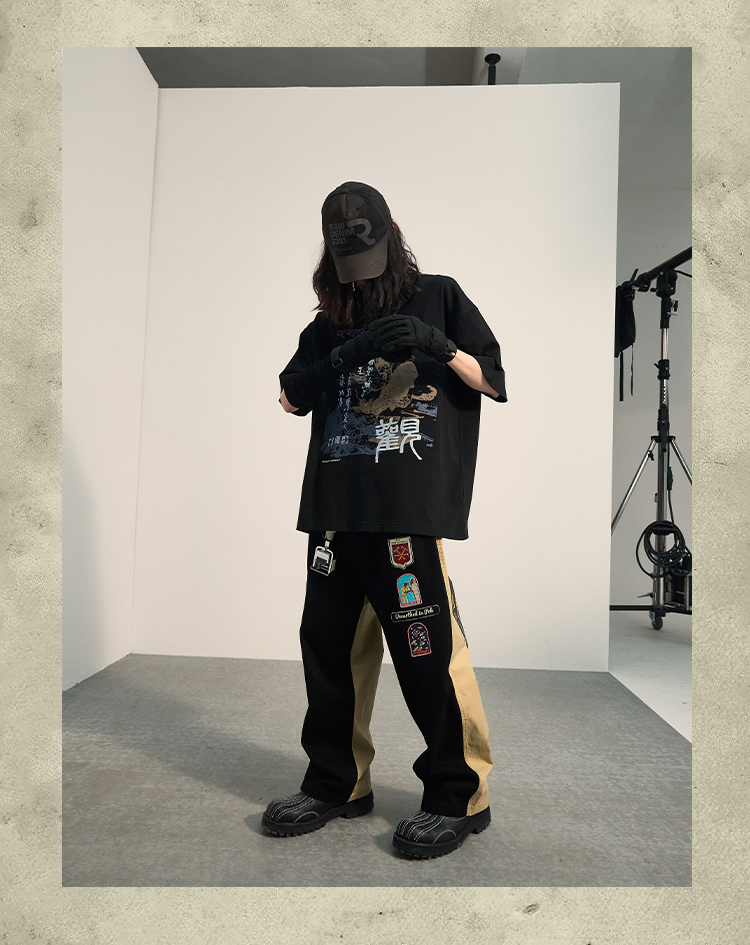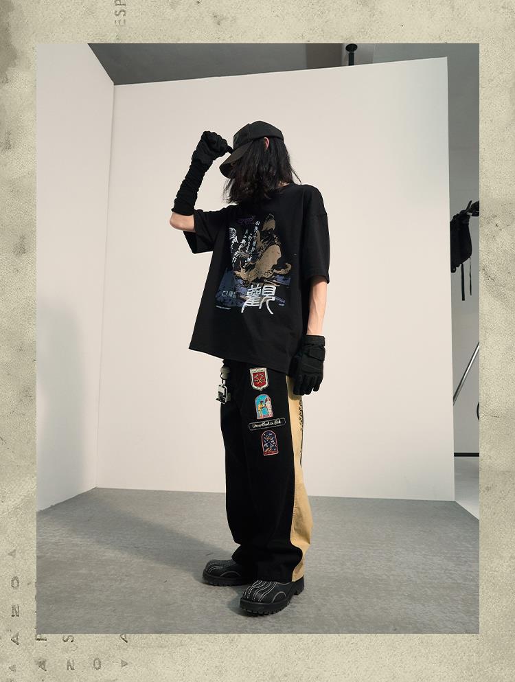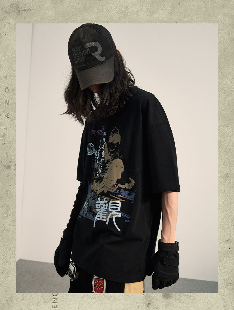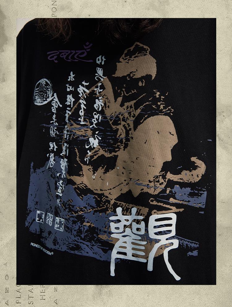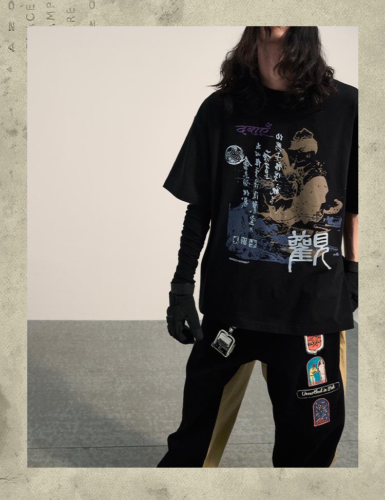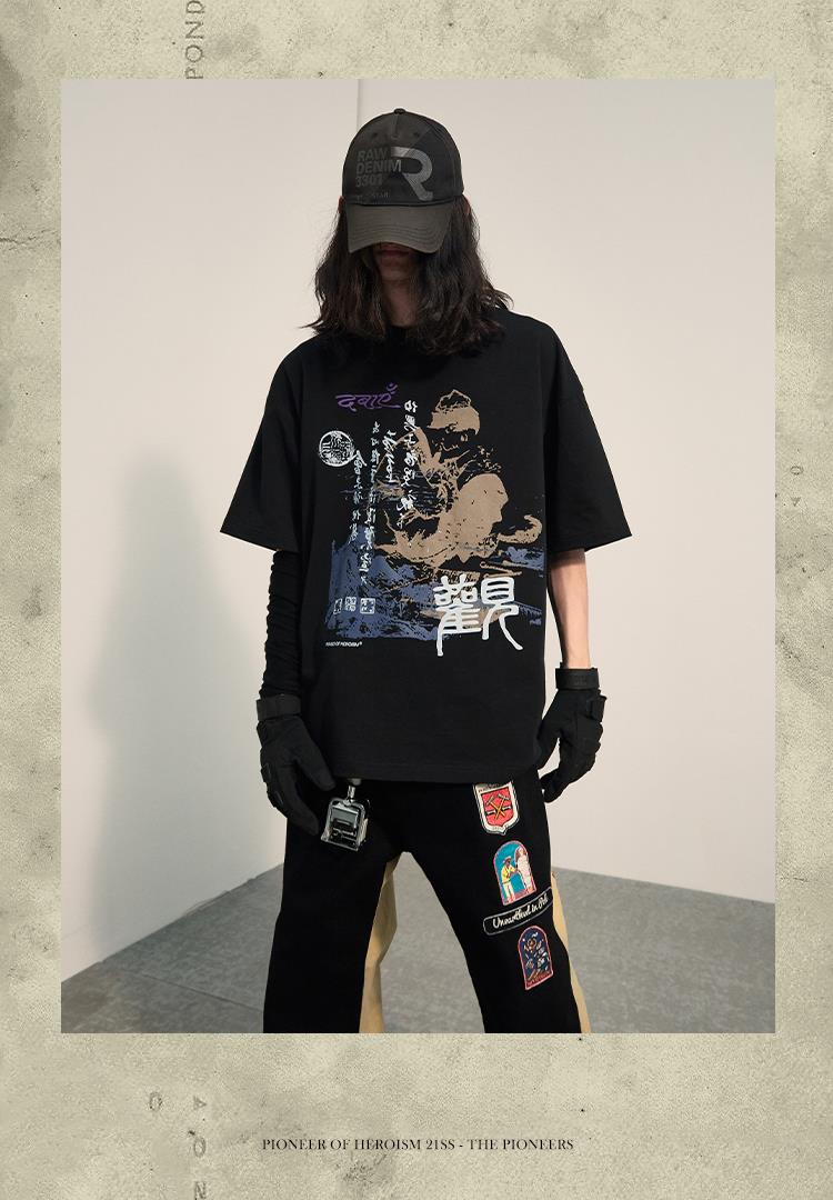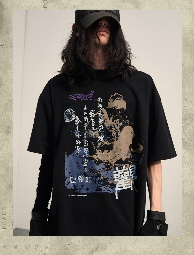 POH「观」 印刷术毕升人像国潮印花T恤男装街头宽松落肩Tee短袖男
