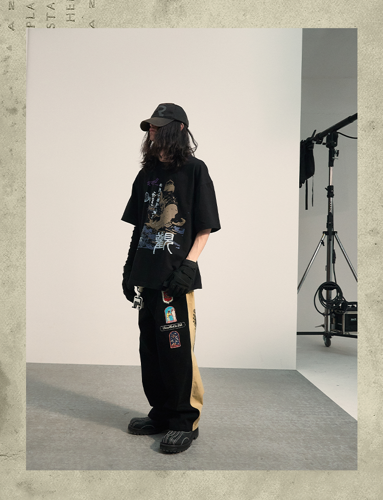 PCLP(PERCLIPS)扭曲时空短袖男夏季国潮牌ins潮流百搭港风半袖t恤