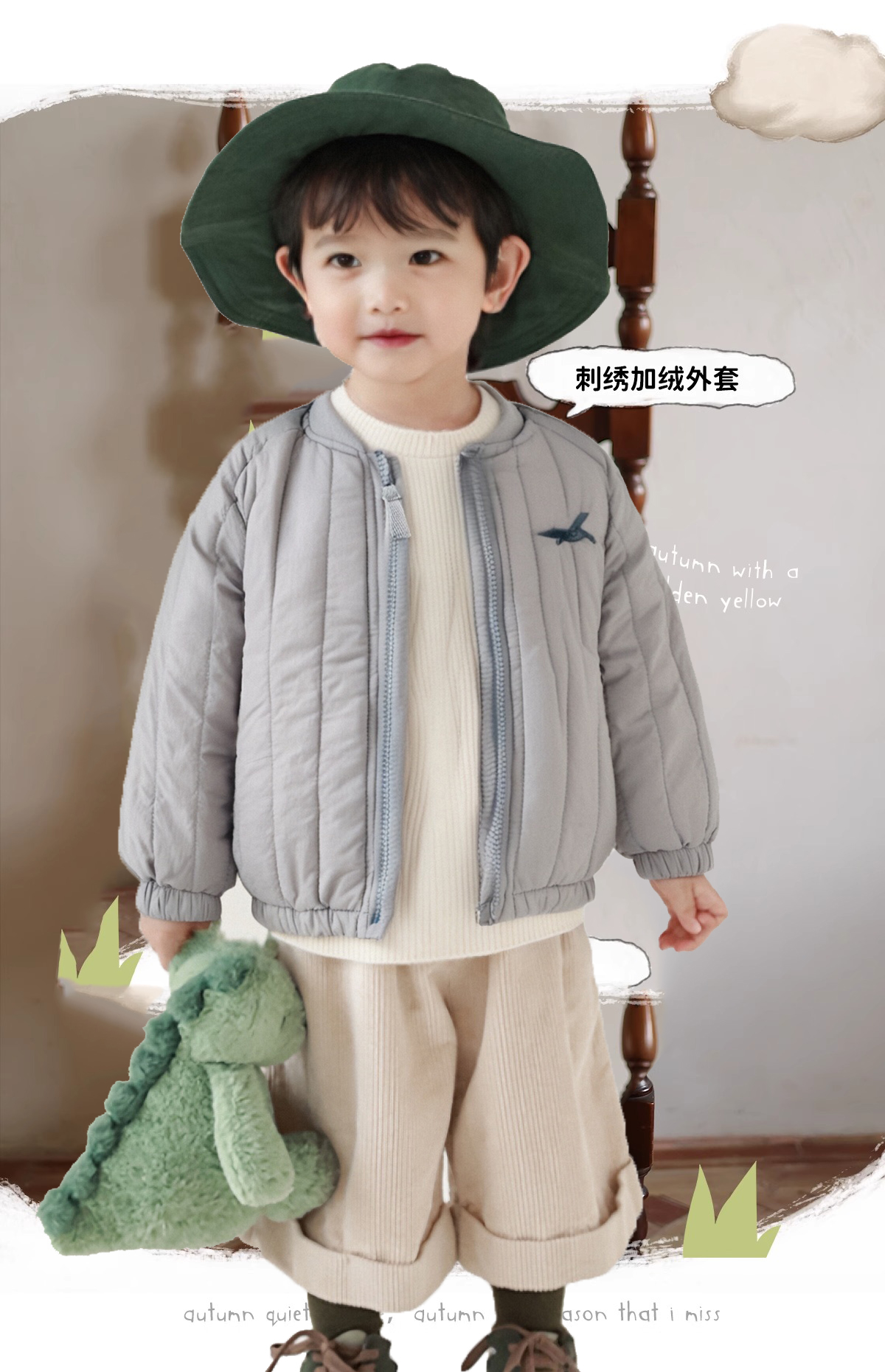 儿童棉服加厚外套加绒棉上衣男女童洋气刺绣棒球服宝宝冬装潮