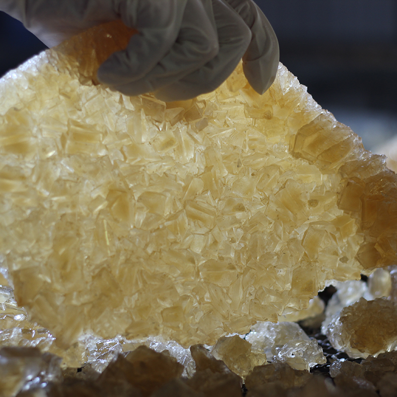 老冰糖全采用人工破碎,相比机器破碎能更好的保留老冰糖晶面的完整性