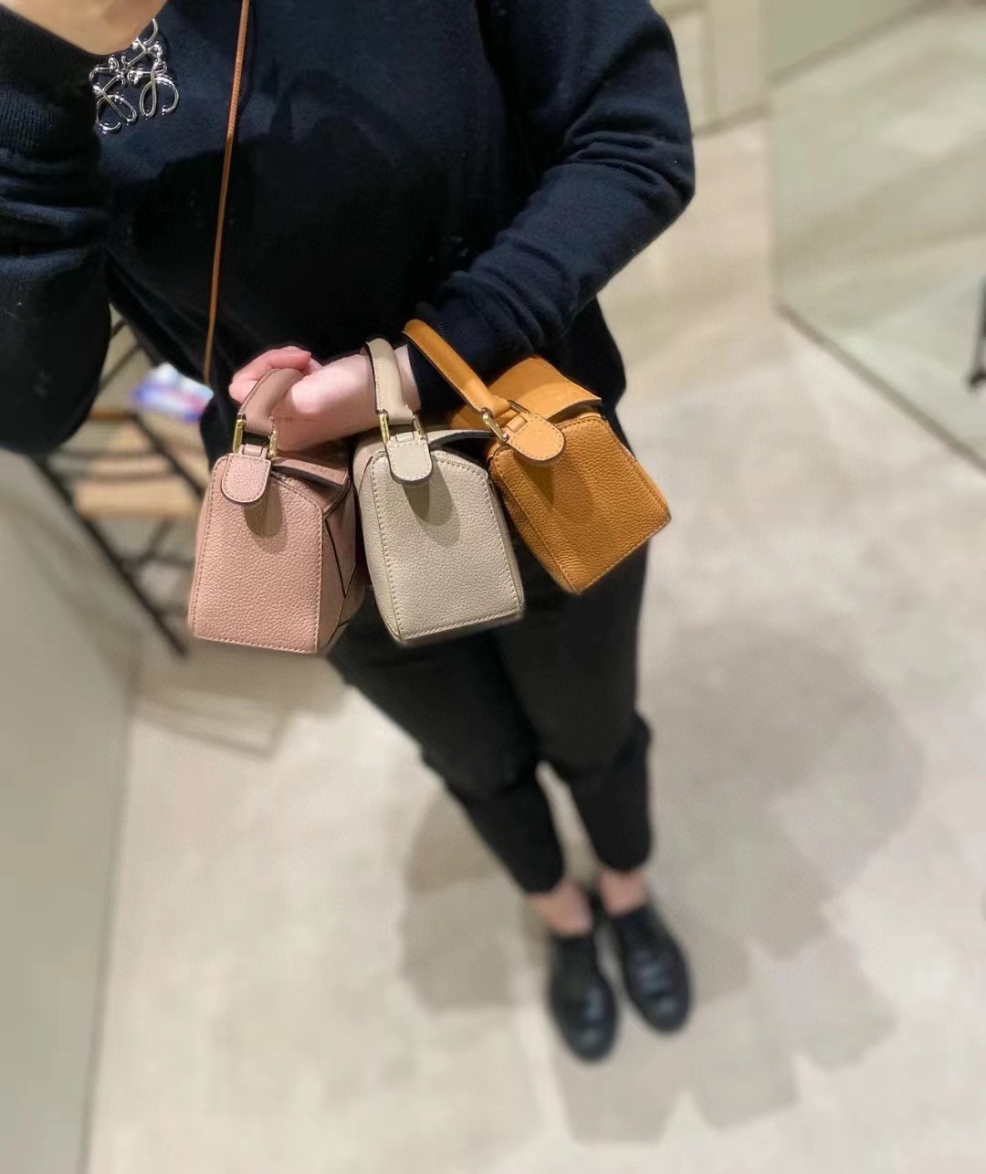 迷你几何采用进口柔软粒面小牛皮制成*德国进口莎菲线,进口ykk拉链👍🉑️斜挎*肩背*手拿或顶部提手携带*人字纹棉帆布衬里*Anagram压纹。