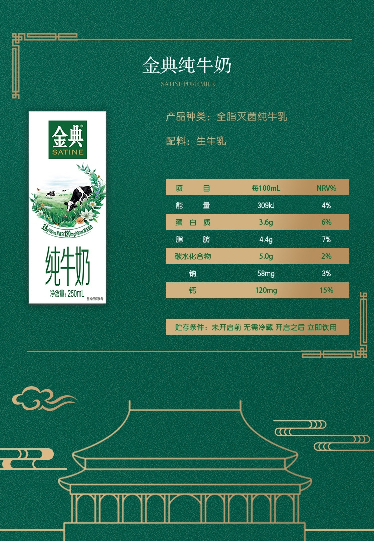 YS 伊利 金典纯牛奶 250mlx12盒 204002000100