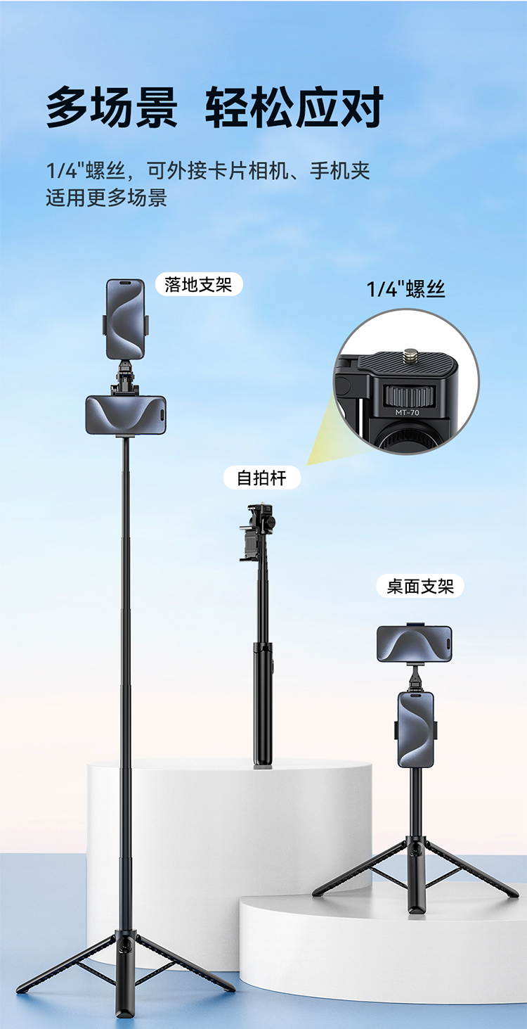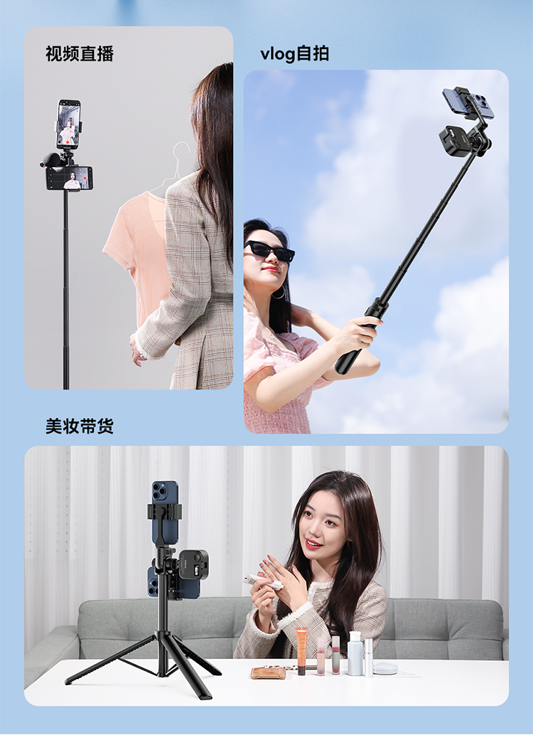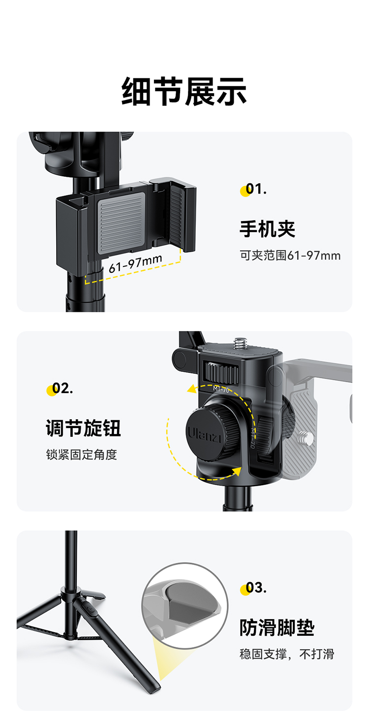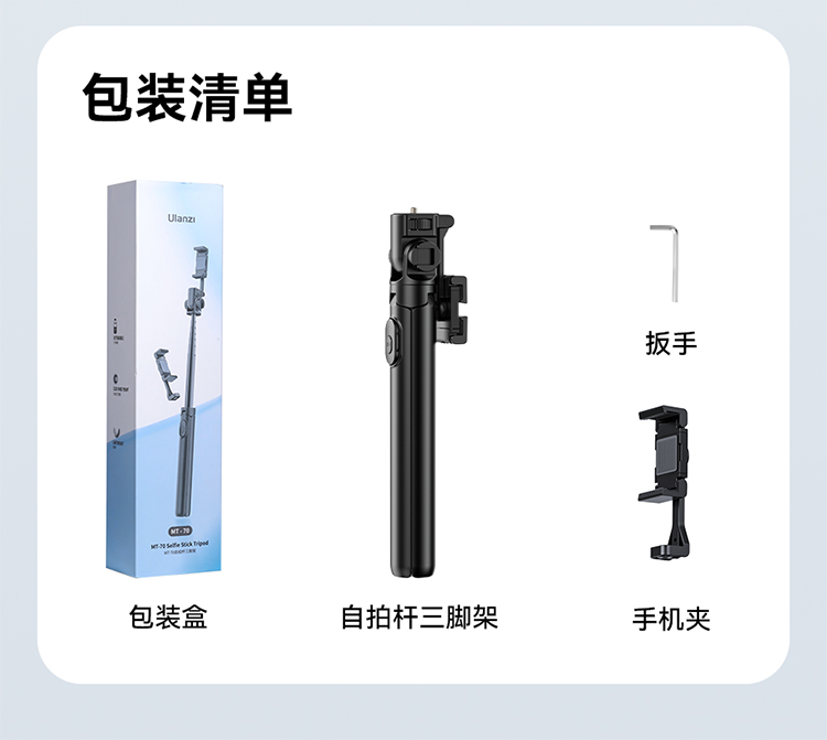 Ulanzi优篮子 MT-70手机自拍杆三脚架蓝牙远程遥控自拍支架抖音主播直播美颜带货可旋转脚架便携vlog摄影支架