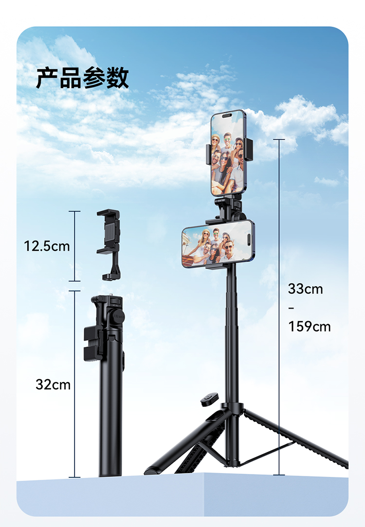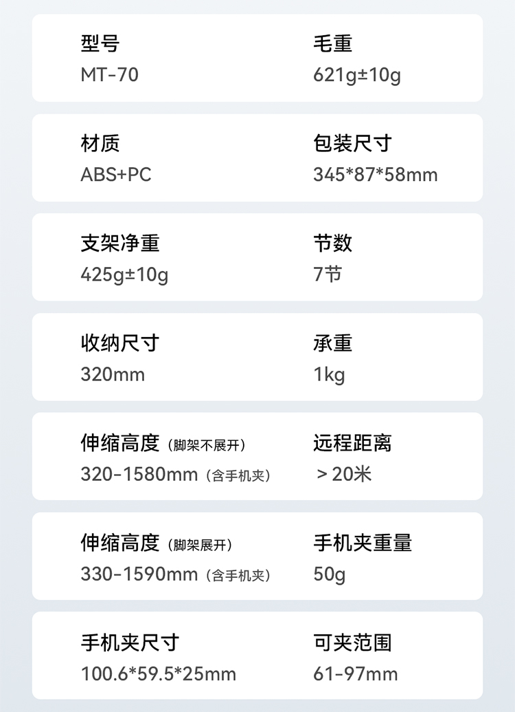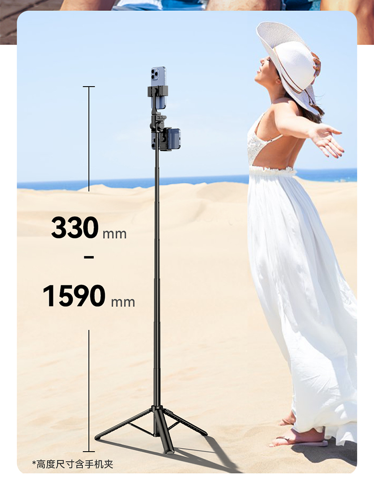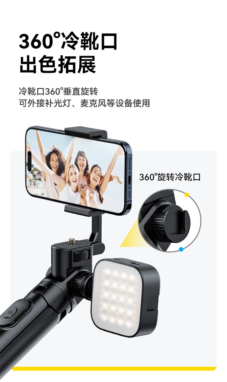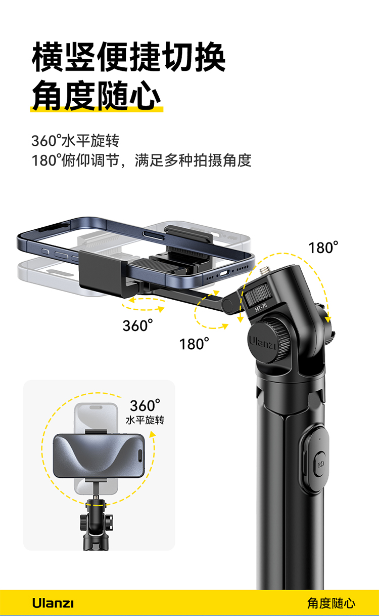 Ulanzi优篮子 MT-70手机自拍杆三脚架蓝牙远程遥控自拍支架抖音主播直播美颜带货可旋转脚架便携vlog摄影支架
