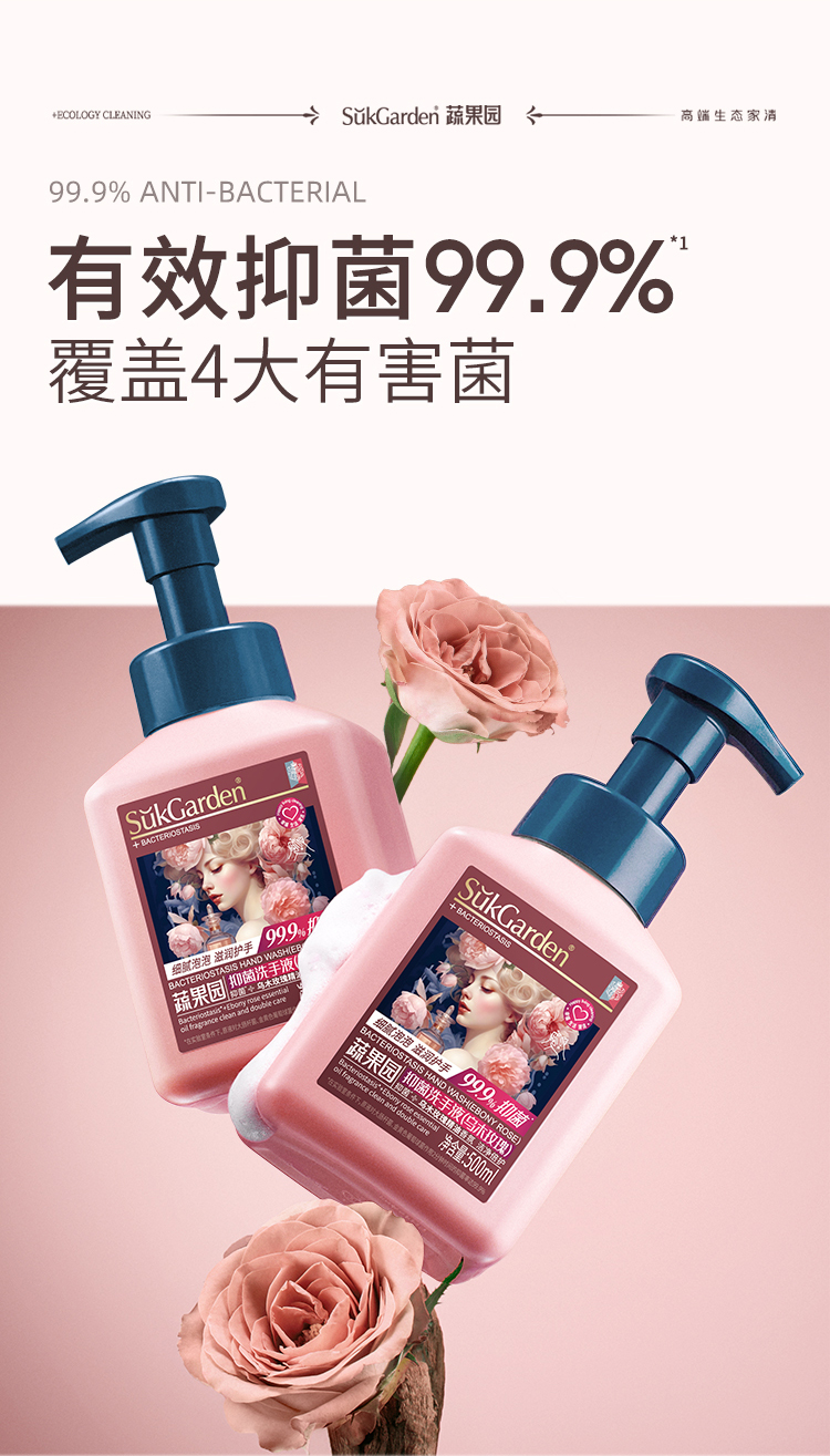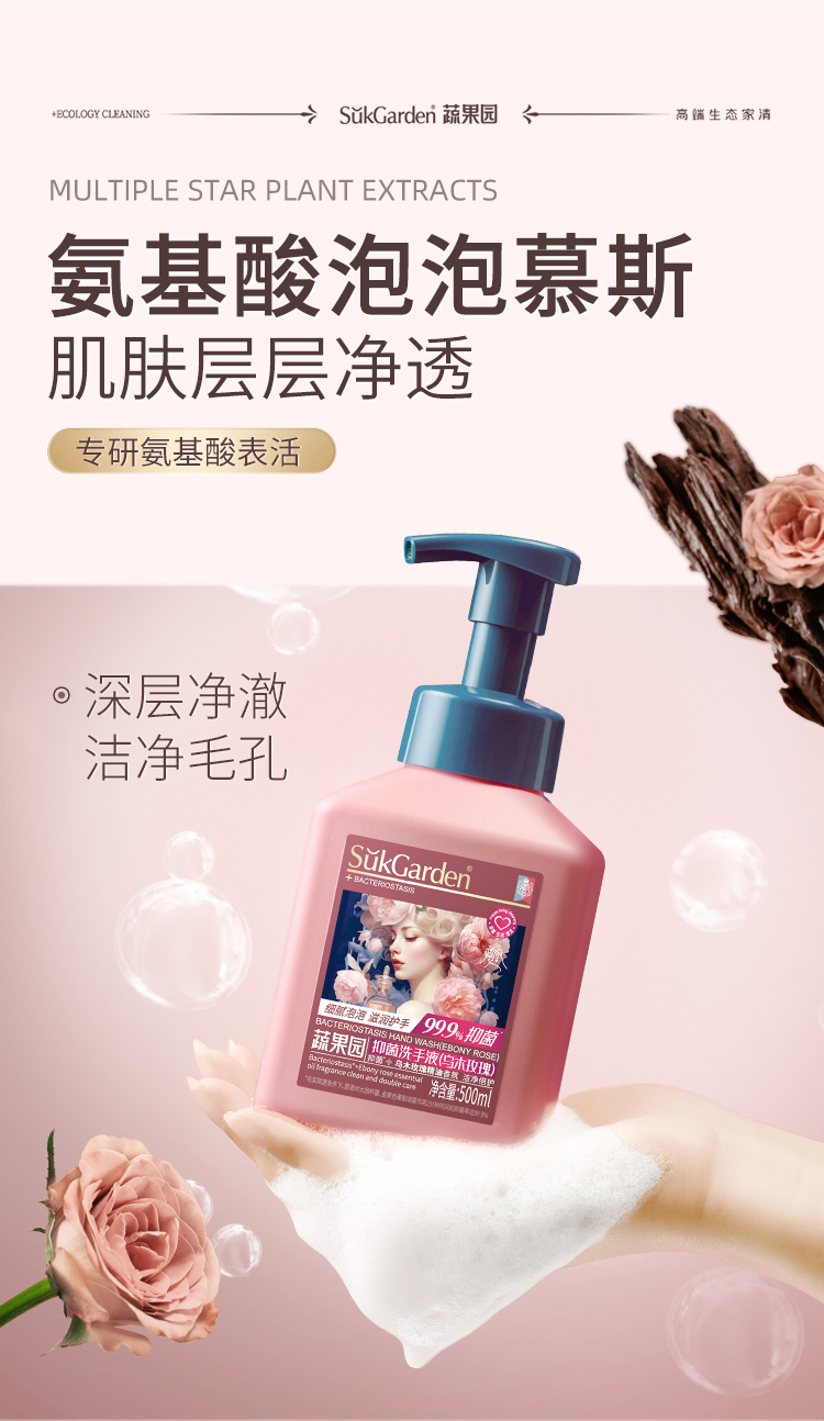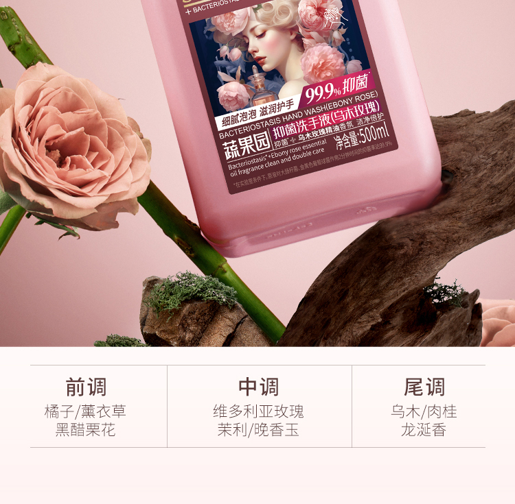 39.9到手1500ml 蔬果园乌木玫瑰抑菌洗手液 精油香氛泡泡洗手液