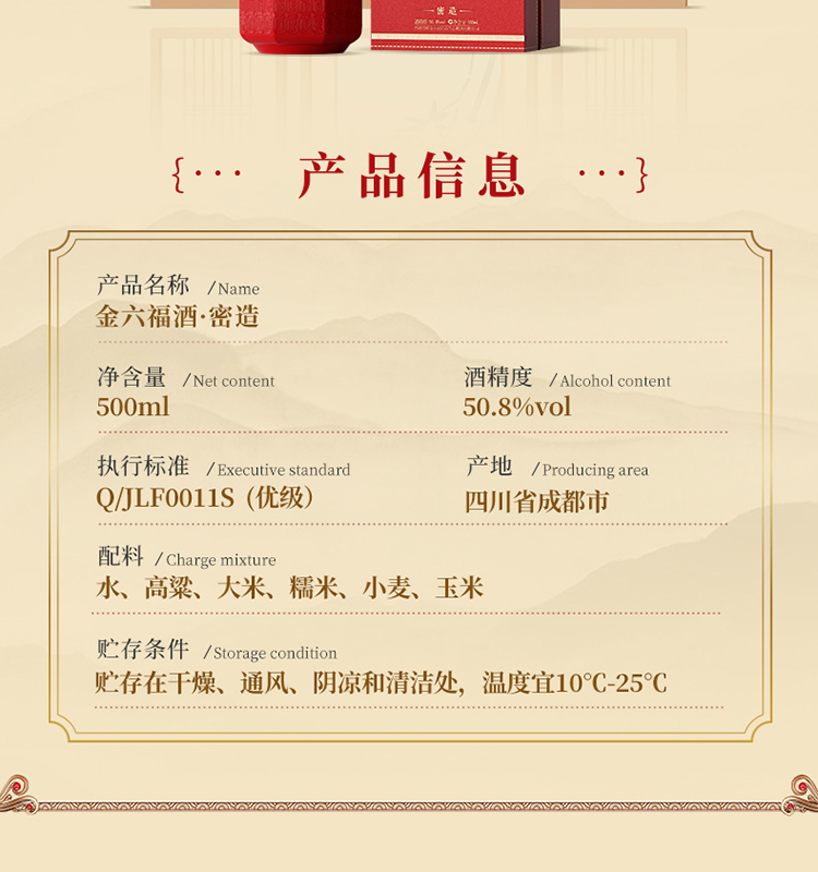 金六福酒.密造50.8度500mL*1瓶(红)(买一赠一)