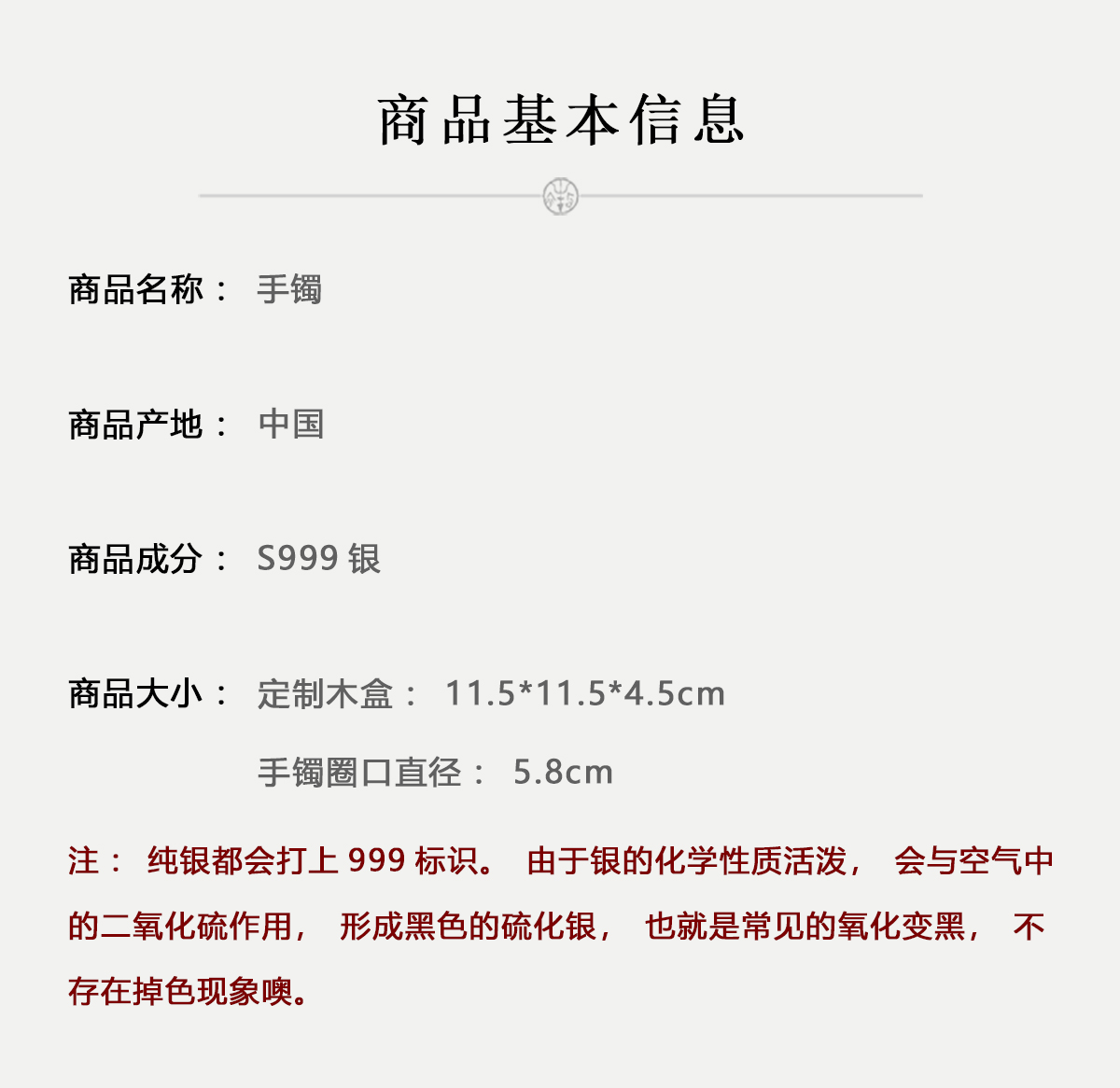 牧衣游 足银手镯可调节复古百搭精致手饰 时夜【不支持会员折】