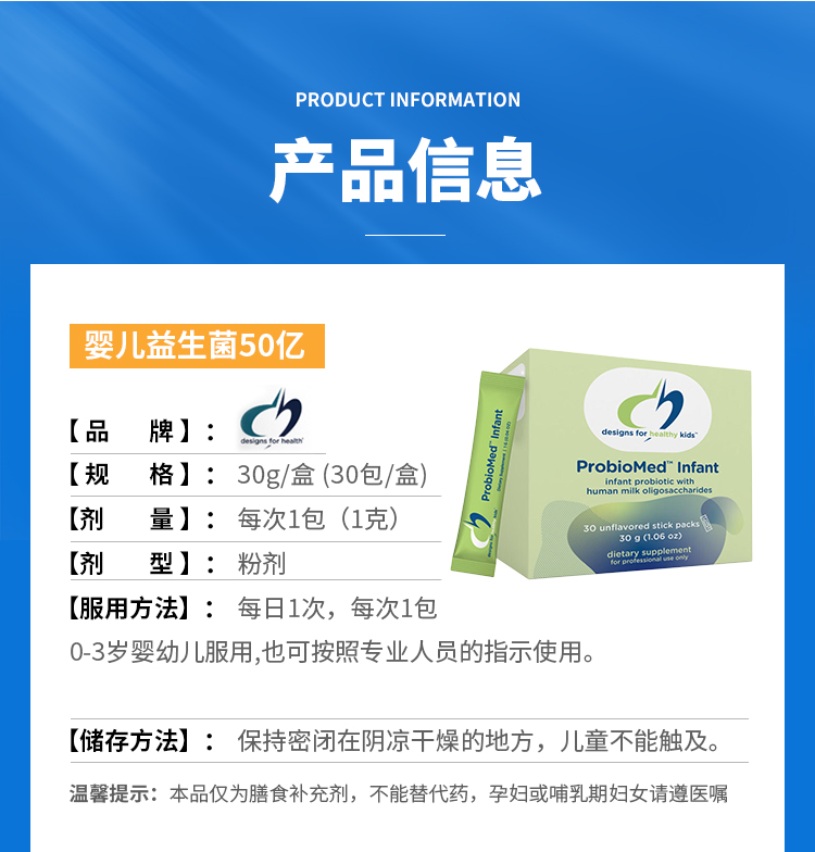 美国DFH 婴幼儿益生菌 ProbioMed Infant design for health 30袋
