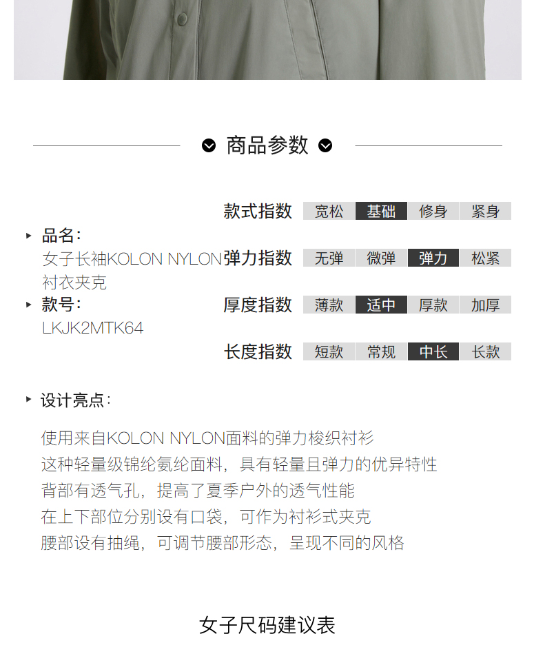KOLONSPORT可隆户外休闲衣女款弹力梭织夹克舒适透汽外套上衣LKJK2MTK64