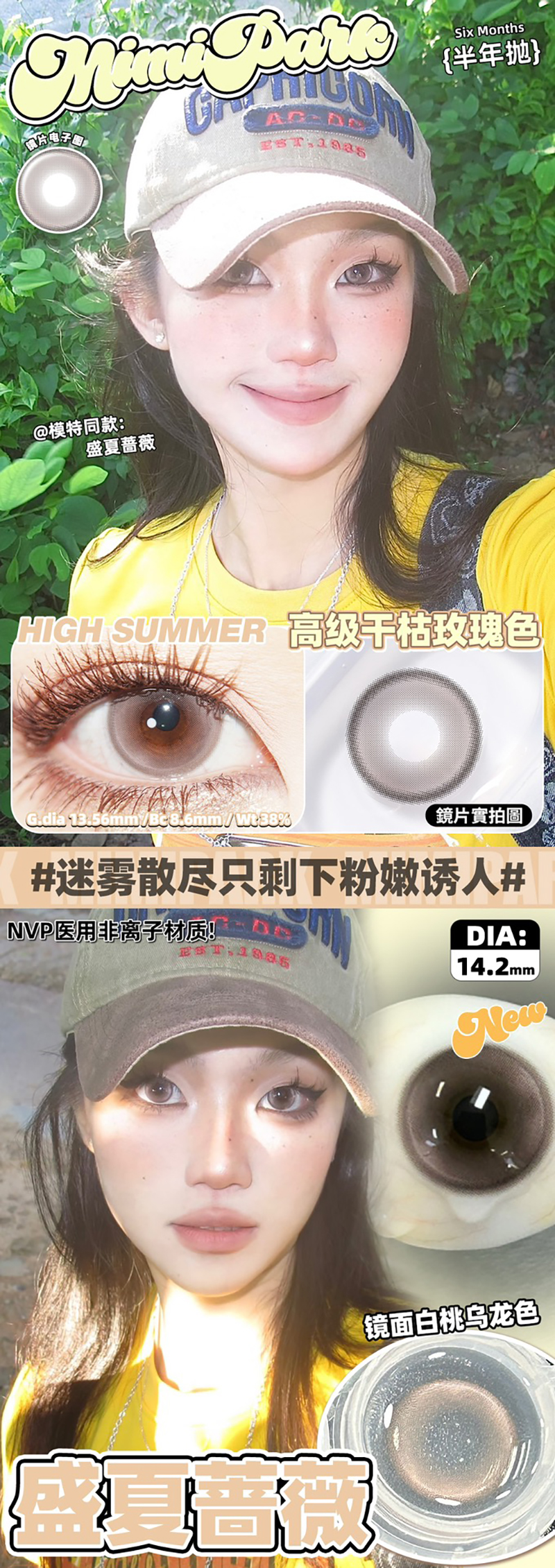 MIMIPARK 盛夏蔷薇 半年抛 2片 14.2mm 参考着色13.56 基弧8.6 含水38%新锐国货