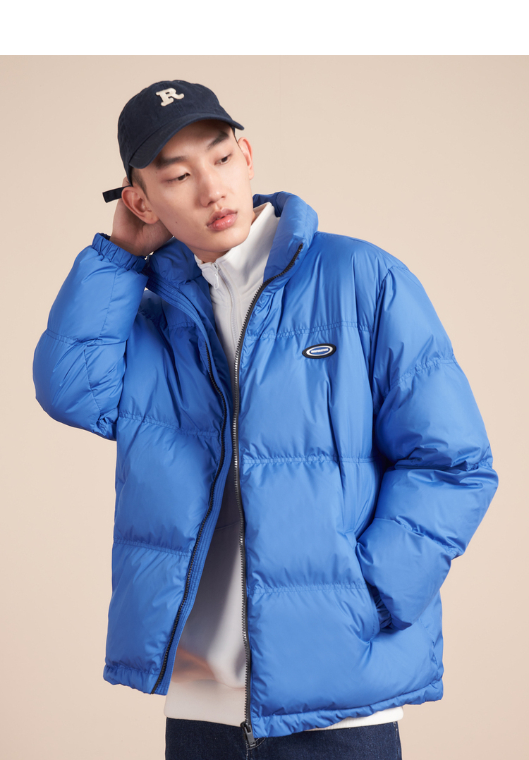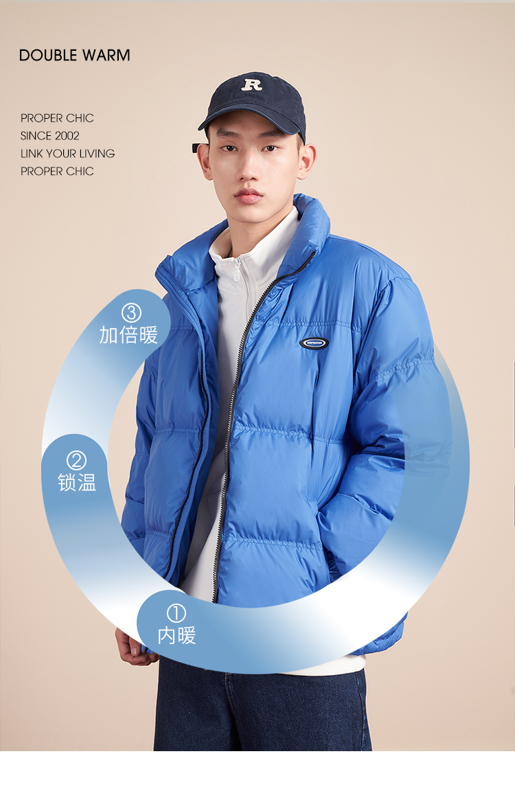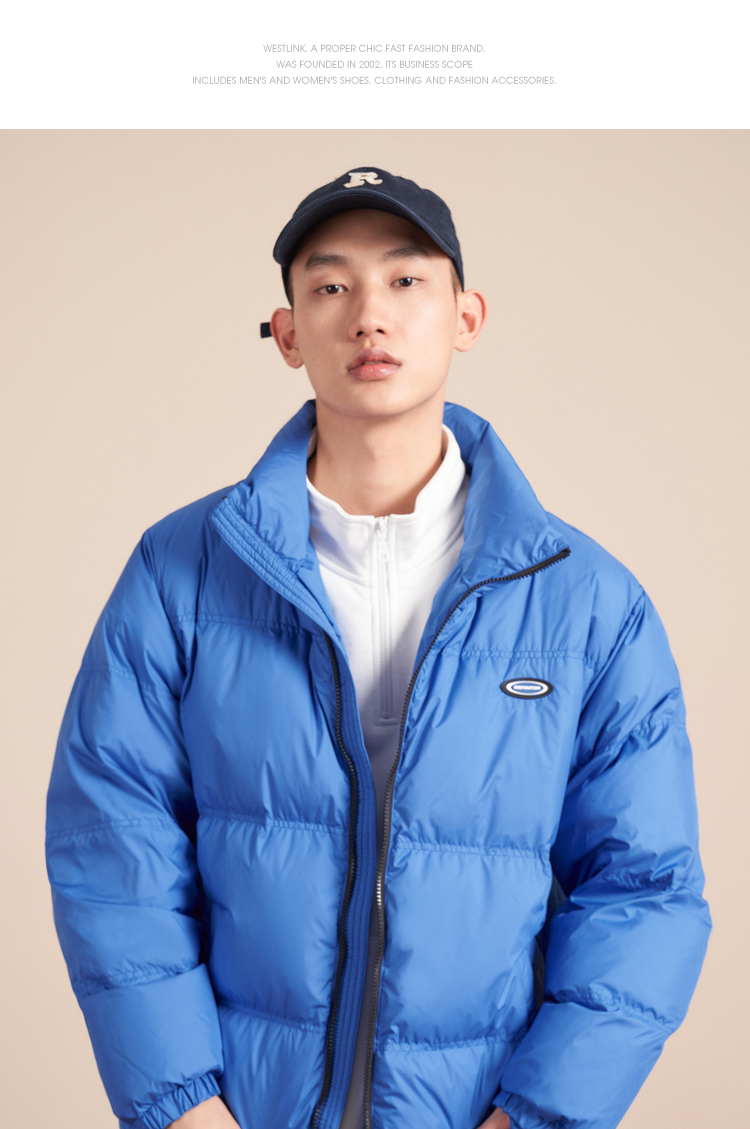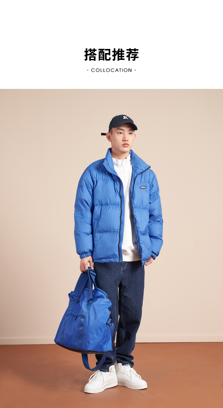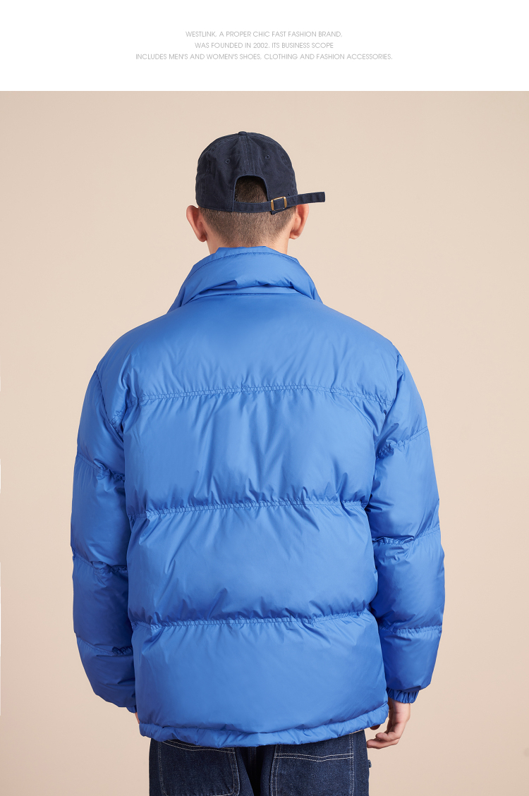 西遇立领防风羽绒服男2023年冬季新款克莱因蓝保暖面包服短款外套12222279