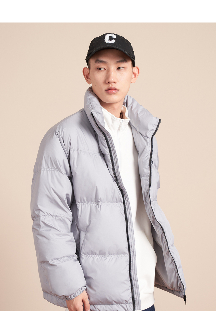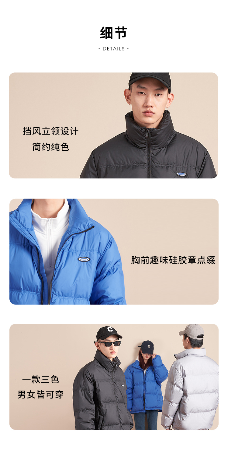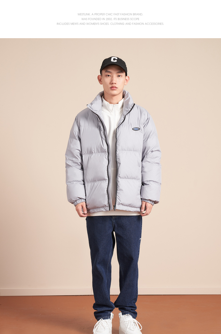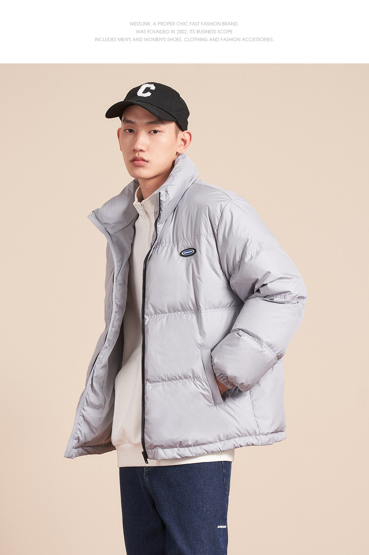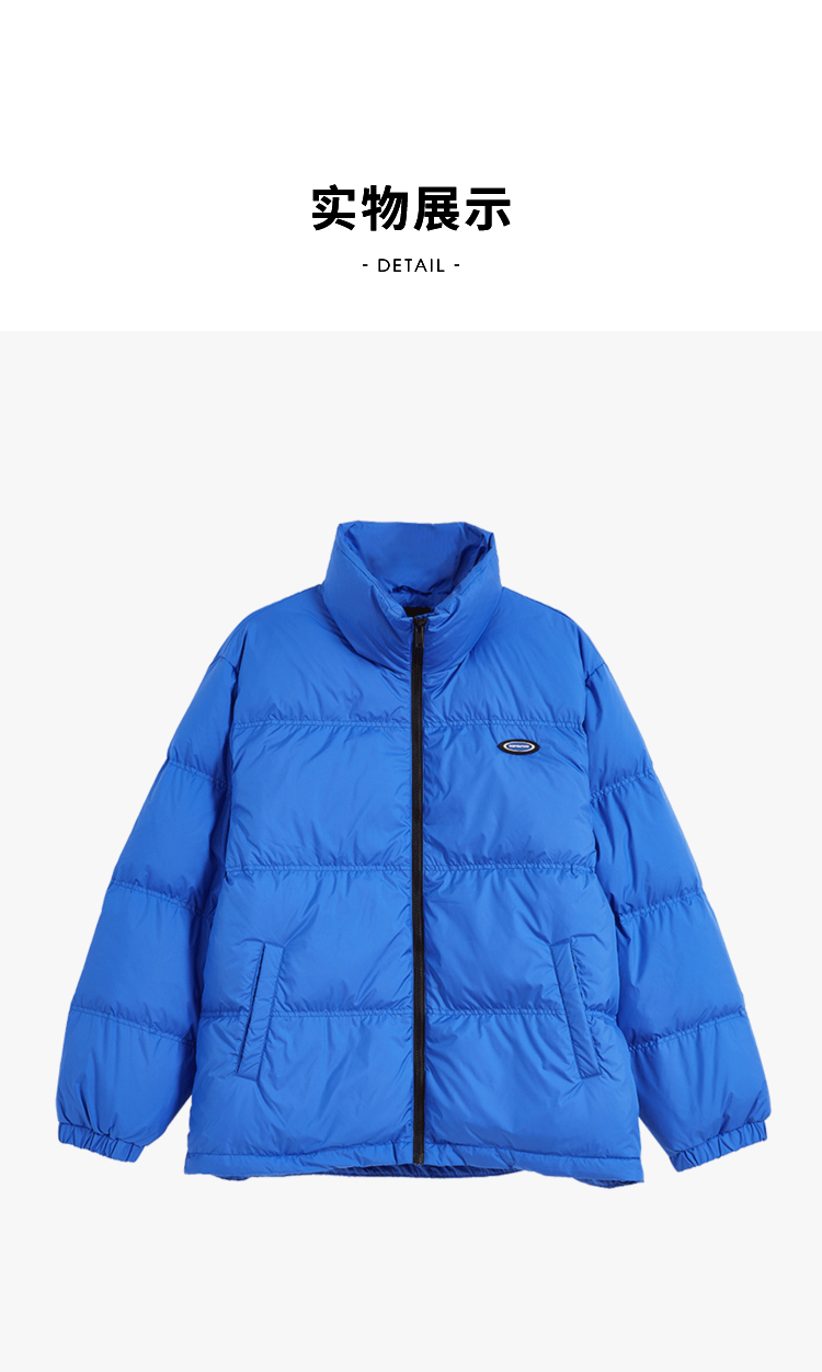 西遇立领防风羽绒服男2023年冬季新款克莱因蓝保暖面包服短款外套12222279