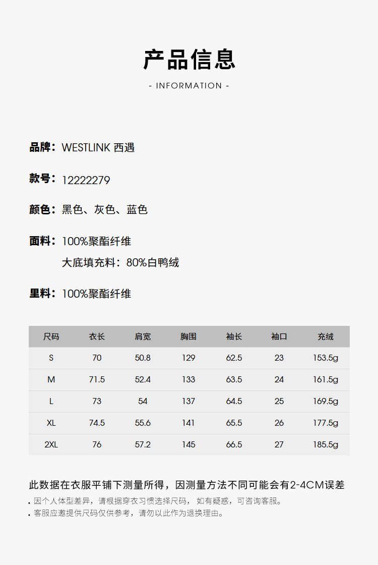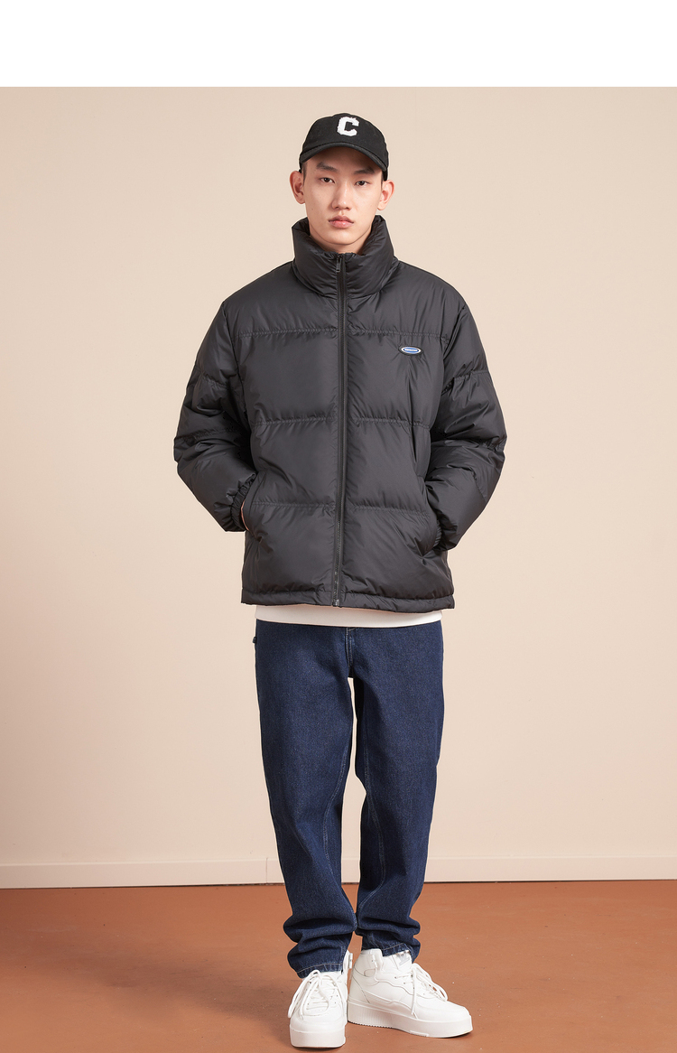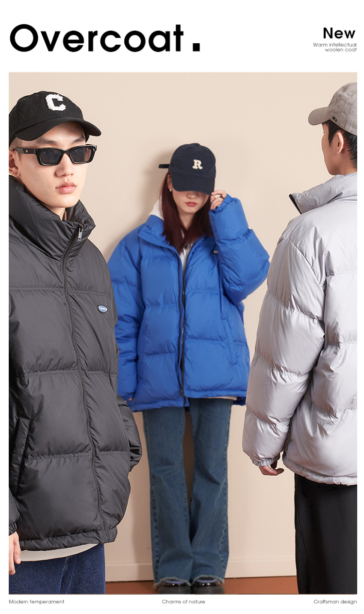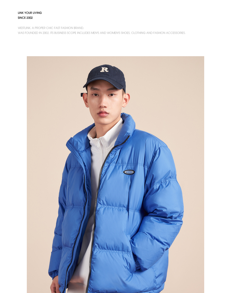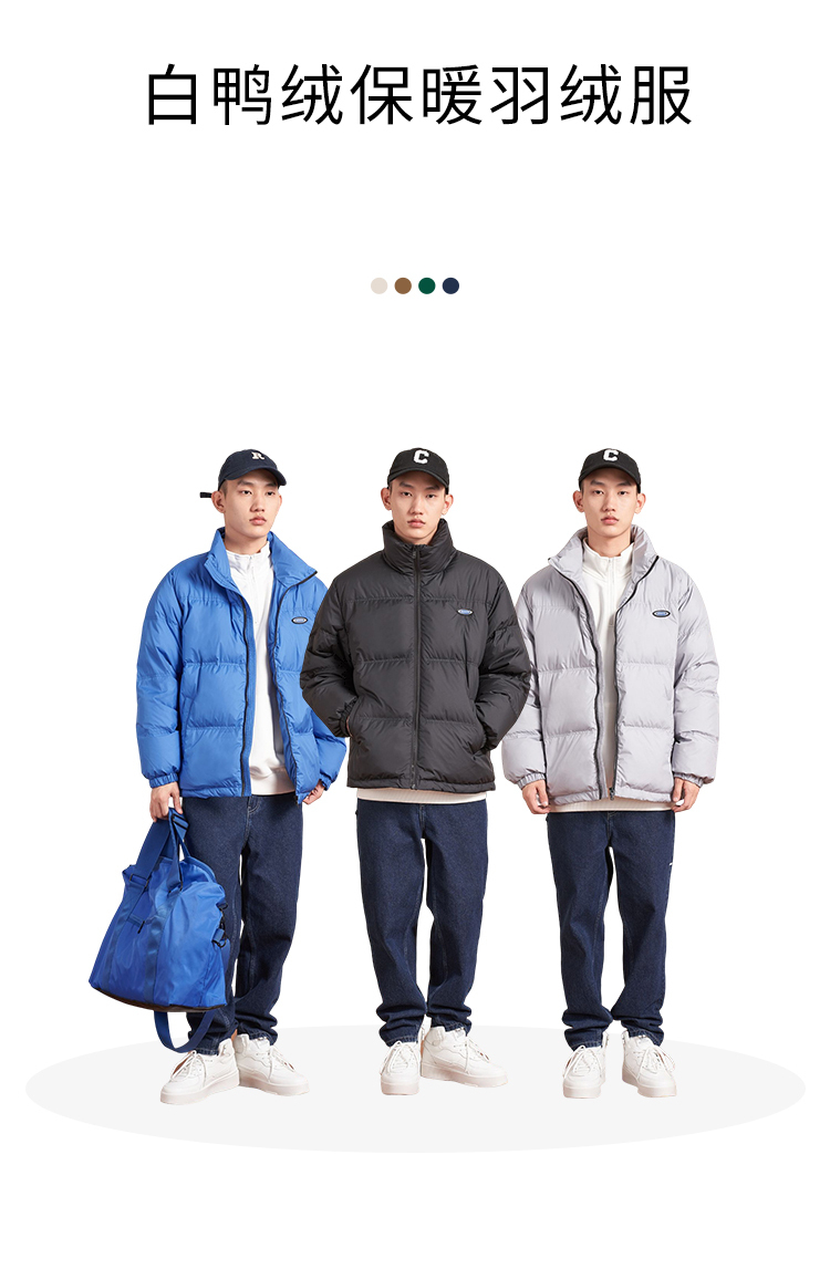 西遇立领防风羽绒服男2023年冬季新款克莱因蓝保暖面包服短款外套12222279