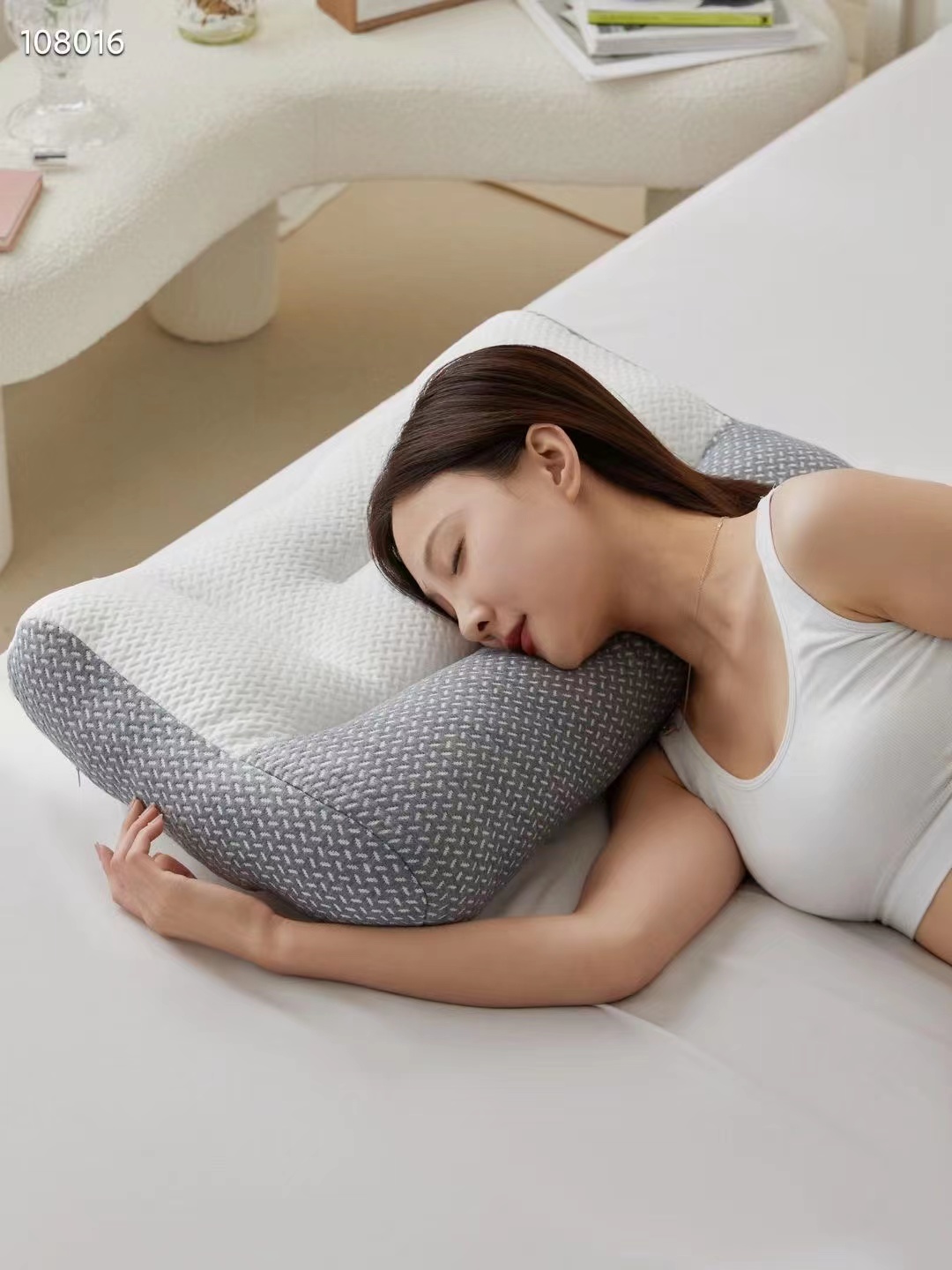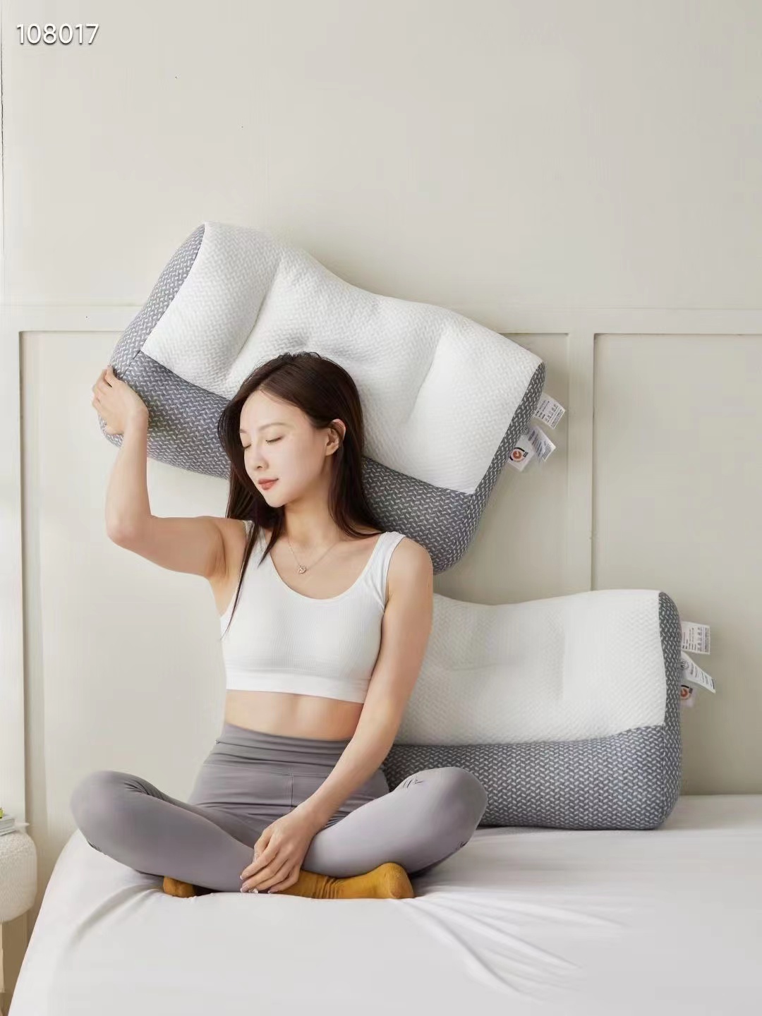 ❤️【做工篇】全方位展示,品质细腻做工❶灰白拼色设计,简约大方〰️❷贴合人体生理设计,脑窝区低,肩颈区高,紧密贴合支撑〰️❸分区绗缝,固定填充不易移位,分区睡眠灵活使用,适宜多种睡姿〰️