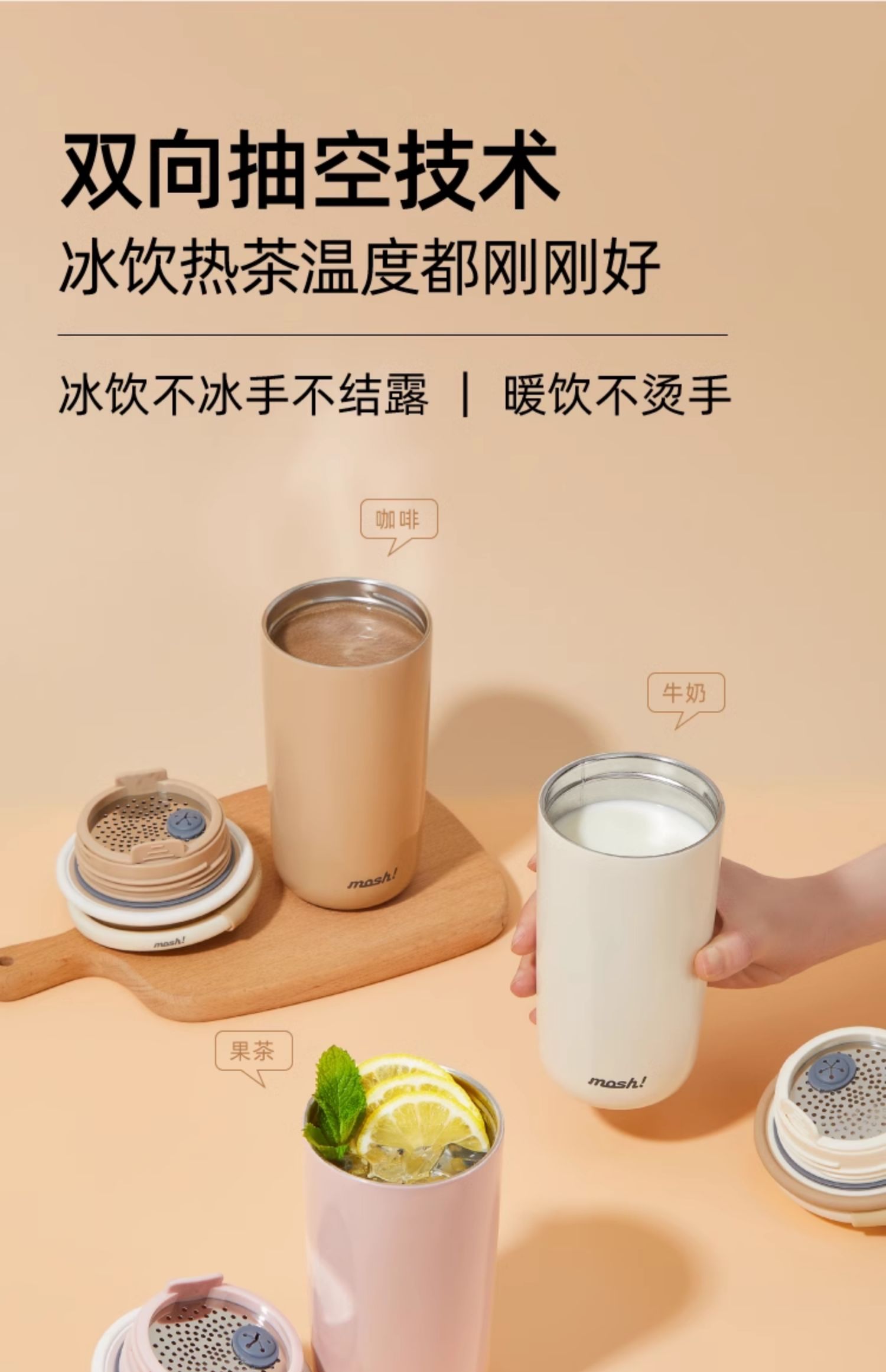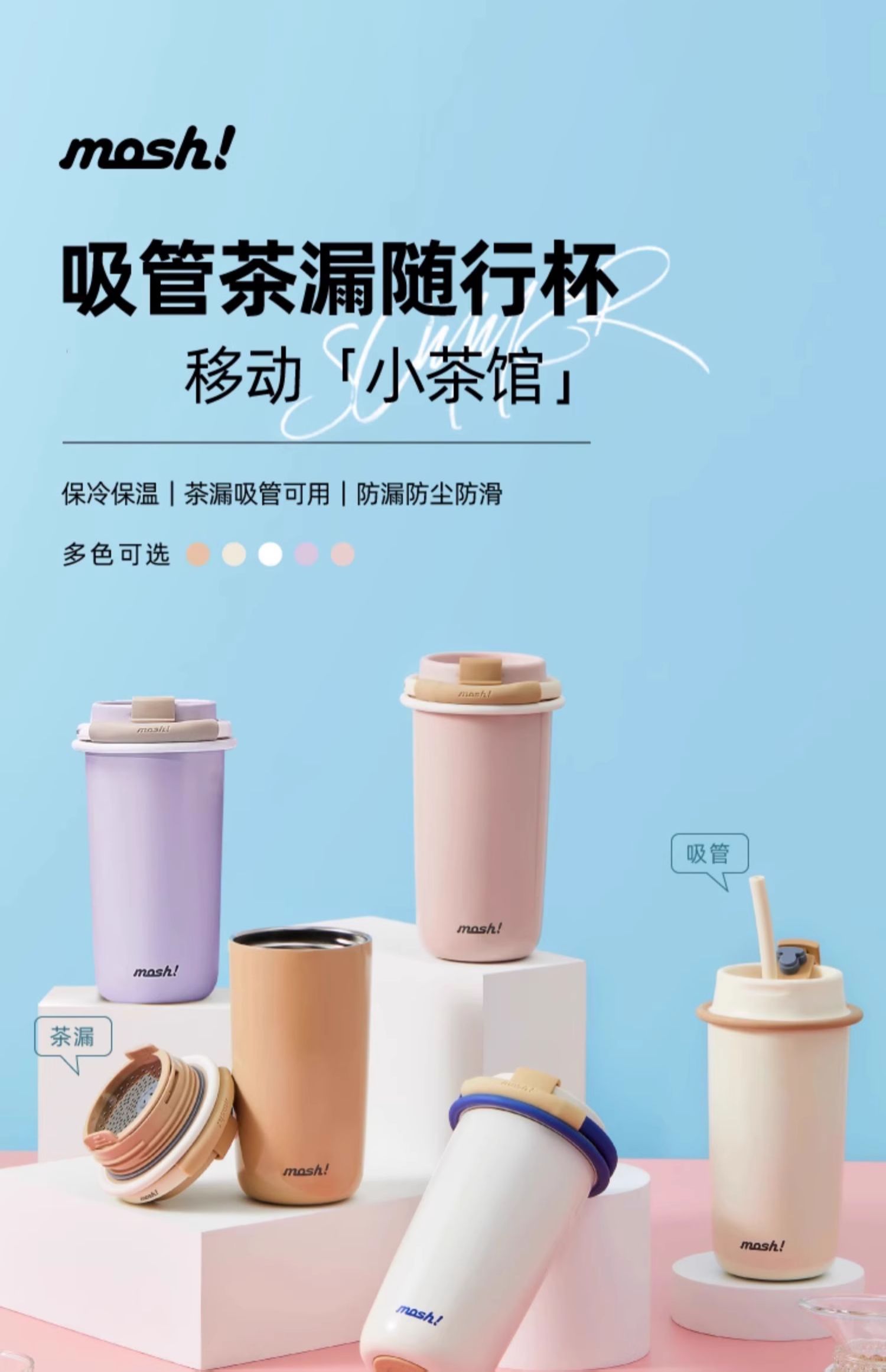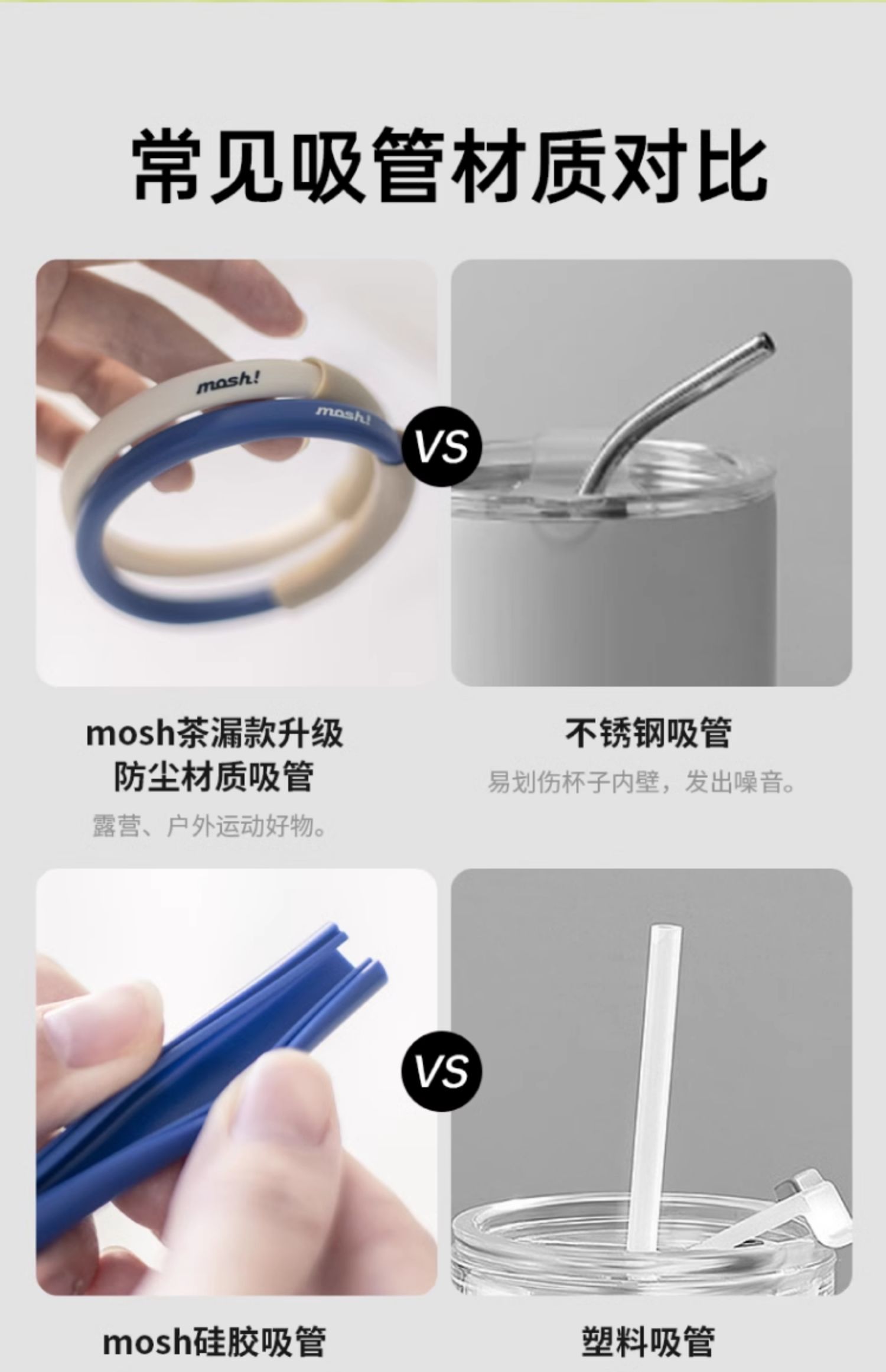 mosh吸管杯饮料杯拿铁咖啡杯保温杯高颜值水杯大容量保冷水杯