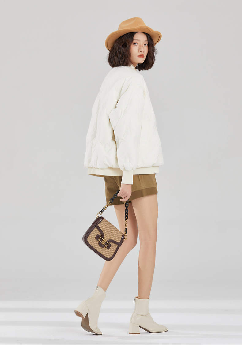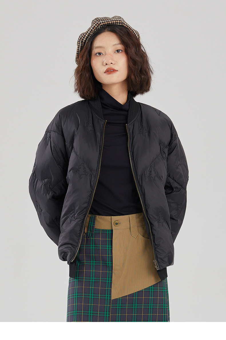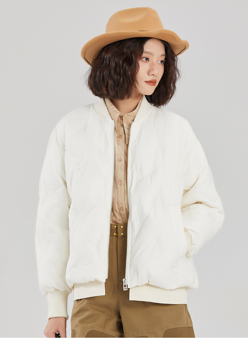 谜底短款羽绒服女2023冬季新款气质时尚绣花鸭绒棒球服239MY7304